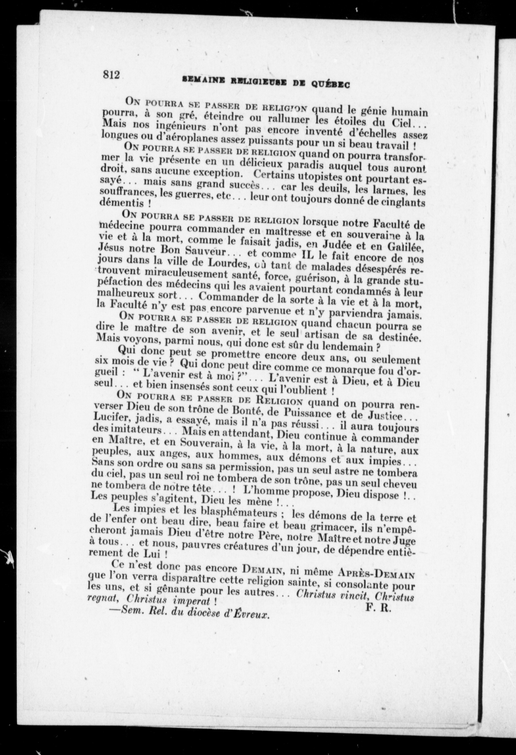 - Semaine religieuse de Québec et Bulletin des oeuvres de l'Action sociale catholique