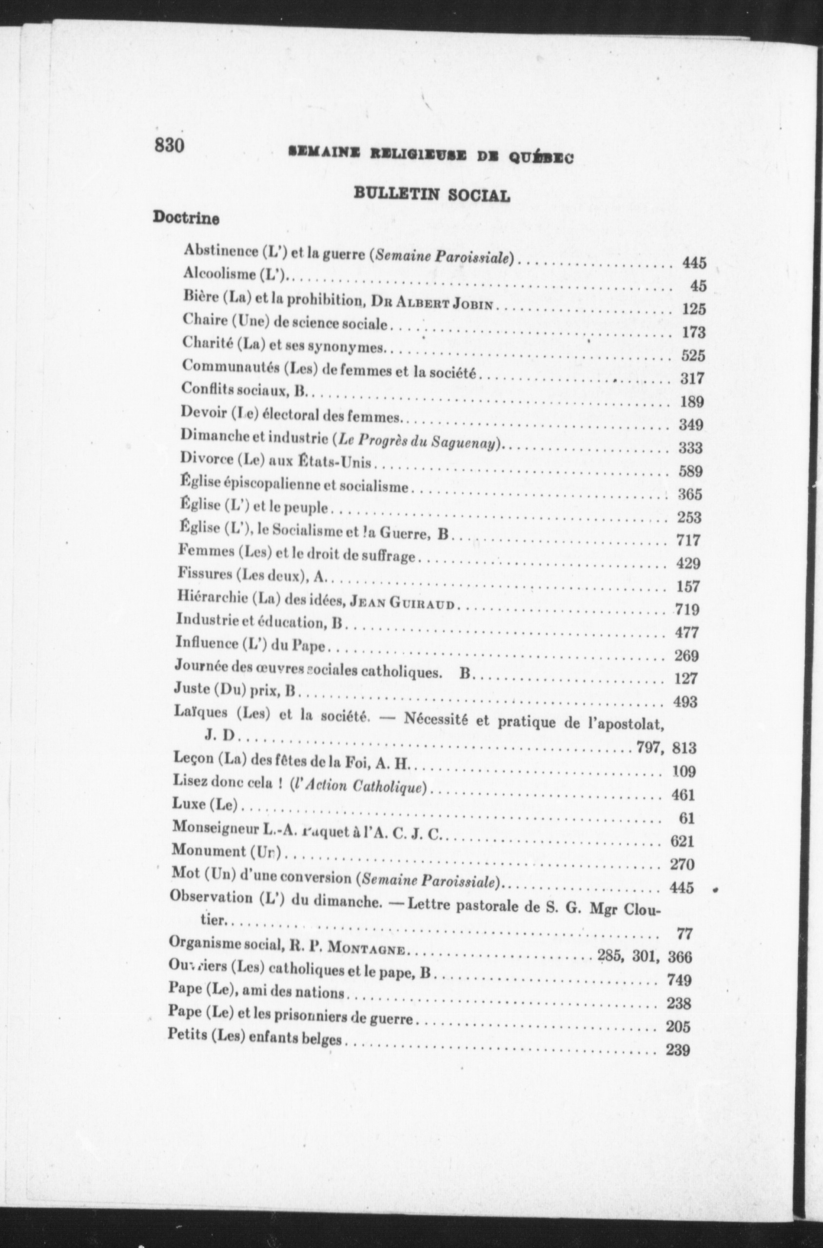 Semaine religieuse de Québec et Bulletin des oeuvres de l'Action sociale catholique