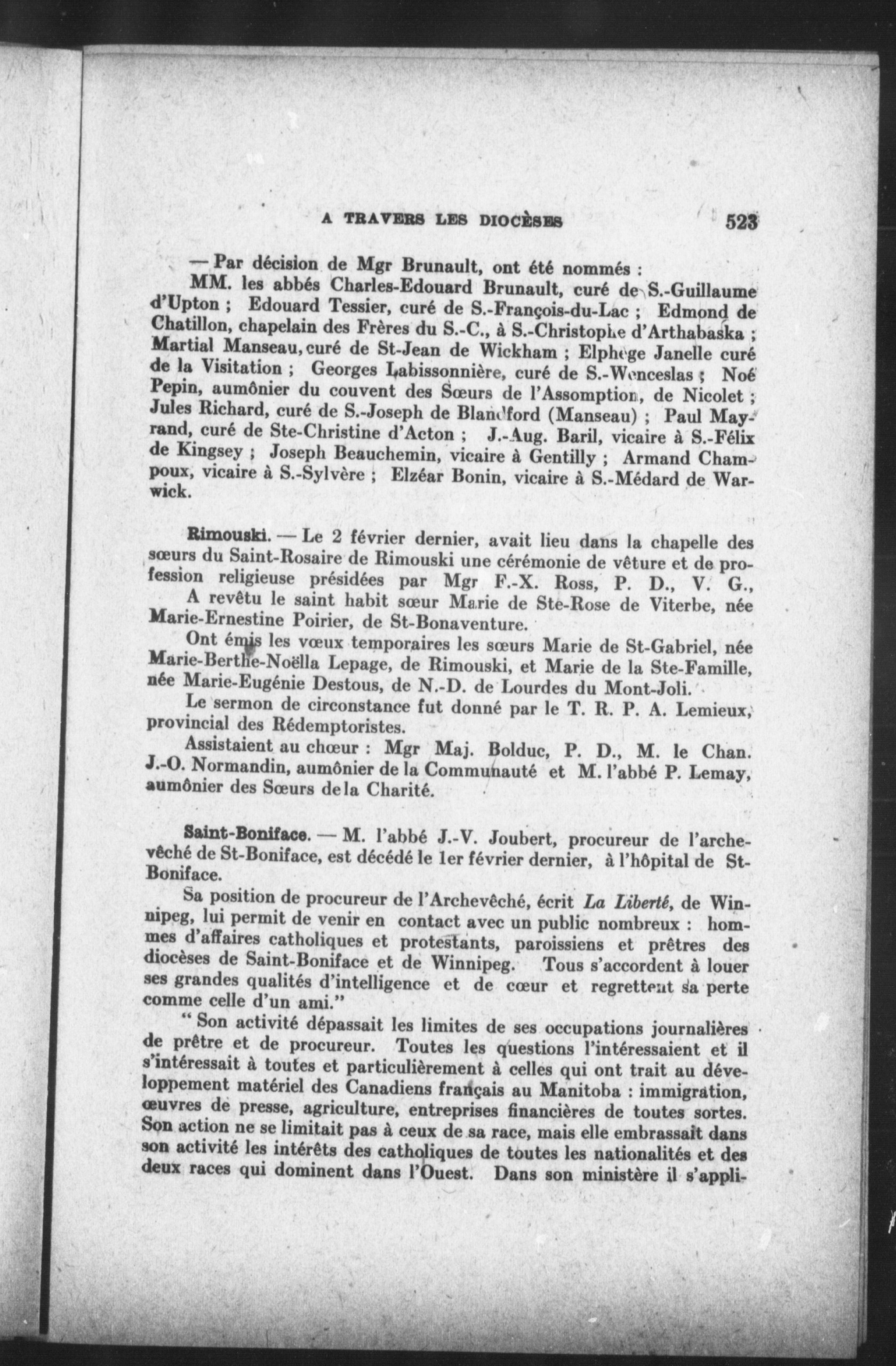 - Semaine religieuse de Québec et Bulletin des oeuvres de l'Action sociale catholique