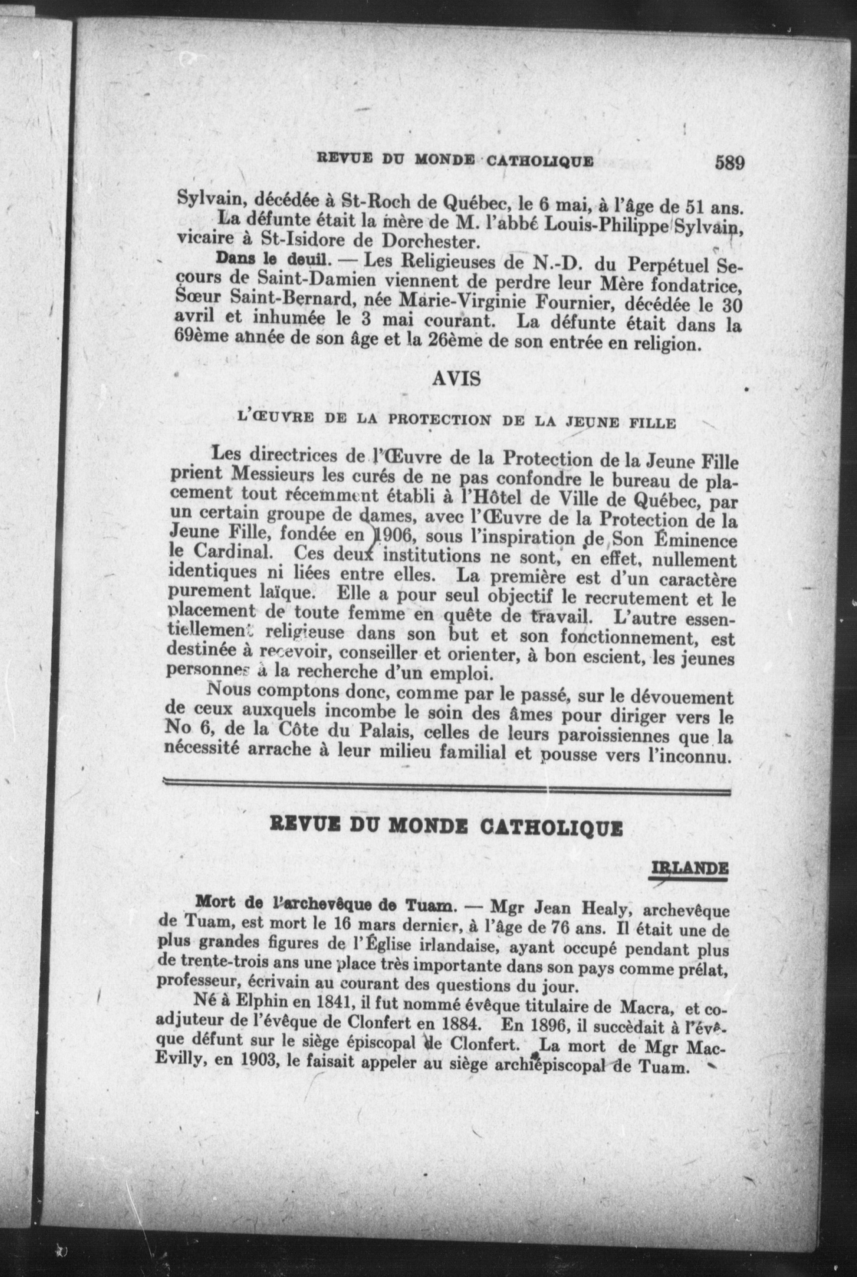 - Semaine religieuse de Québec et Bulletin des oeuvres de l'Action sociale catholique