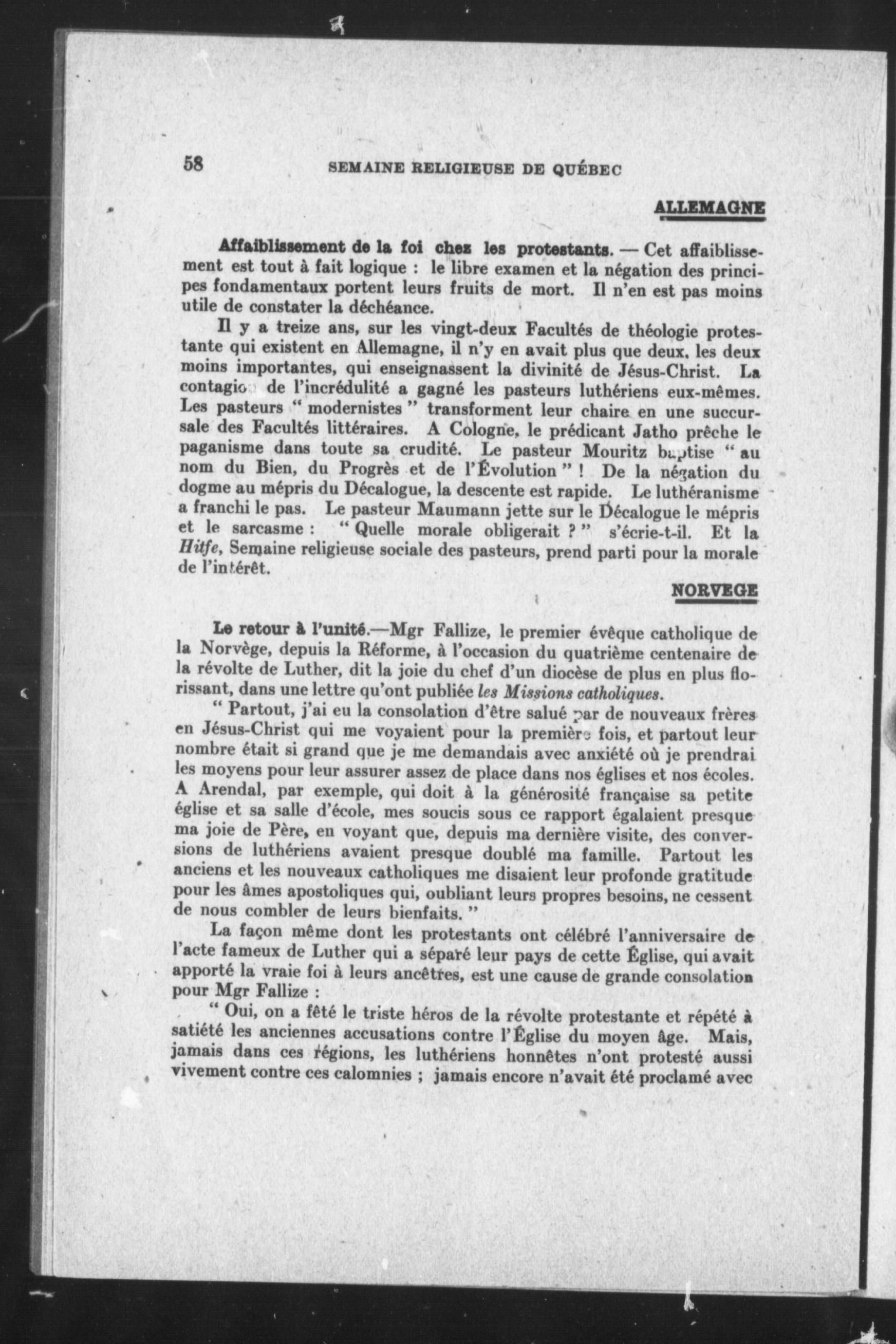 Semaine religieuse de Québec et Bulletin des oeuvres de l'Action sociale catholique