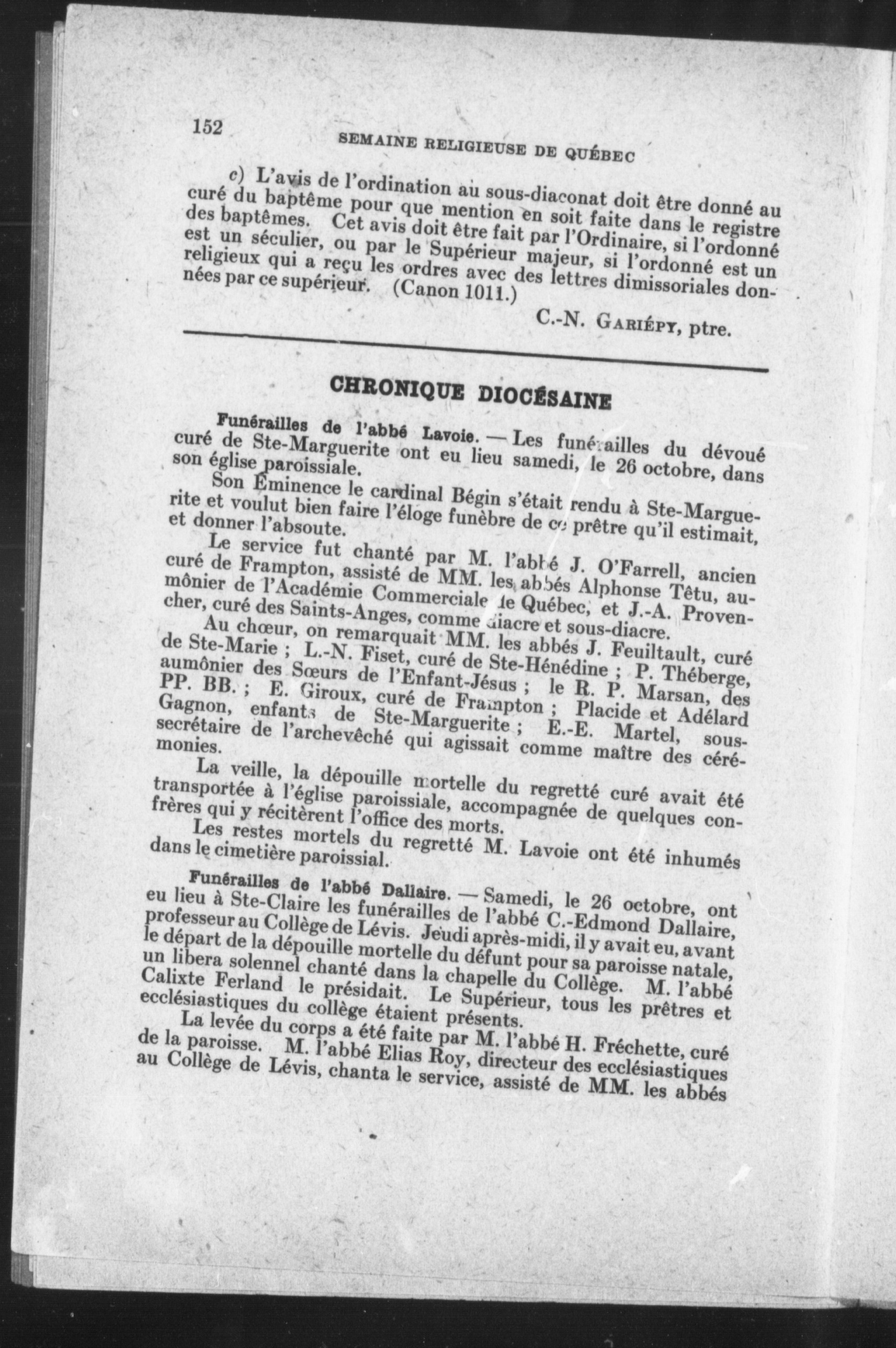 Semaine religieuse de Québec et Bulletin des oeuvres de l'Action sociale catholique