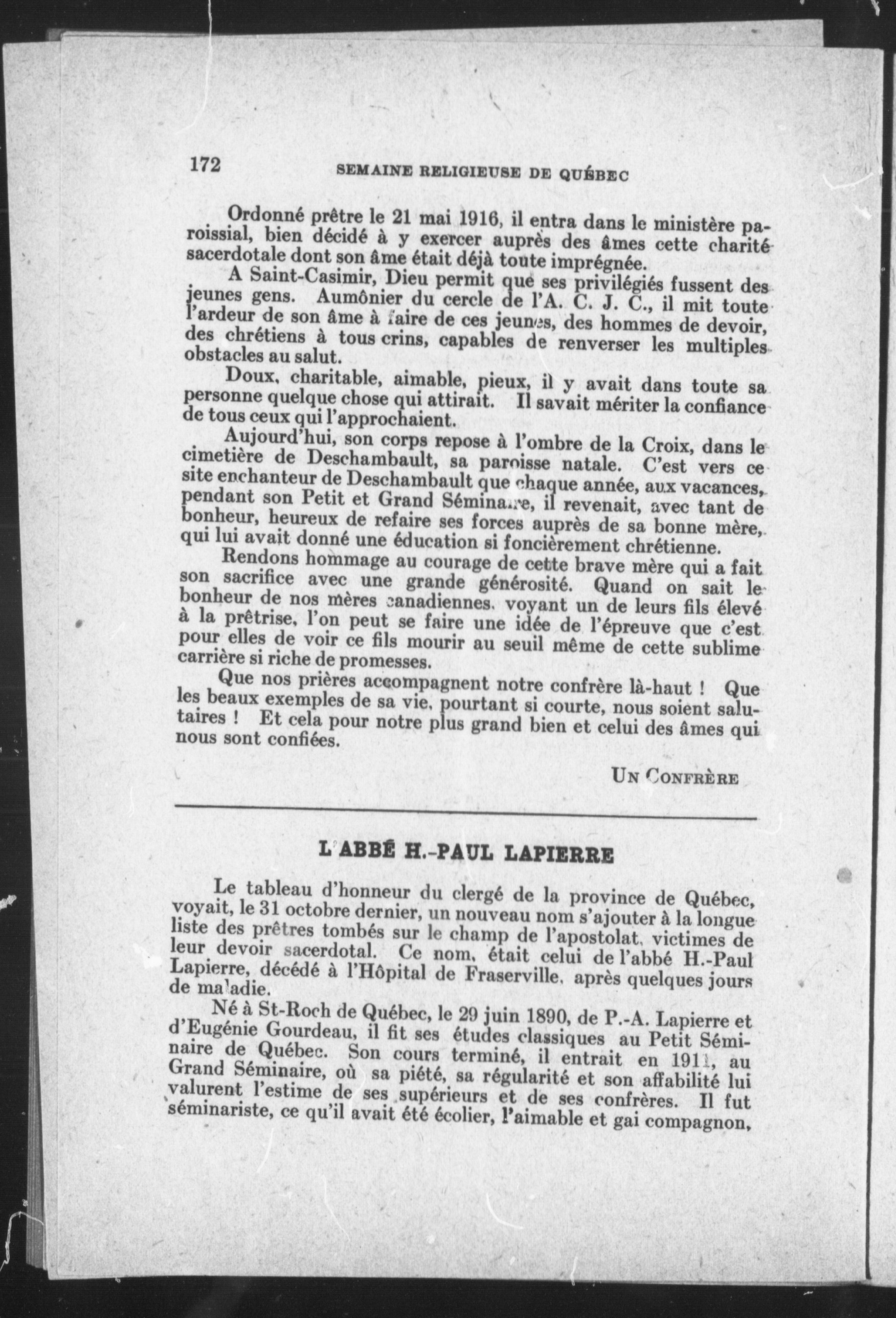 - Semaine religieuse de Québec et Bulletin des oeuvres de l'Action sociale catholique