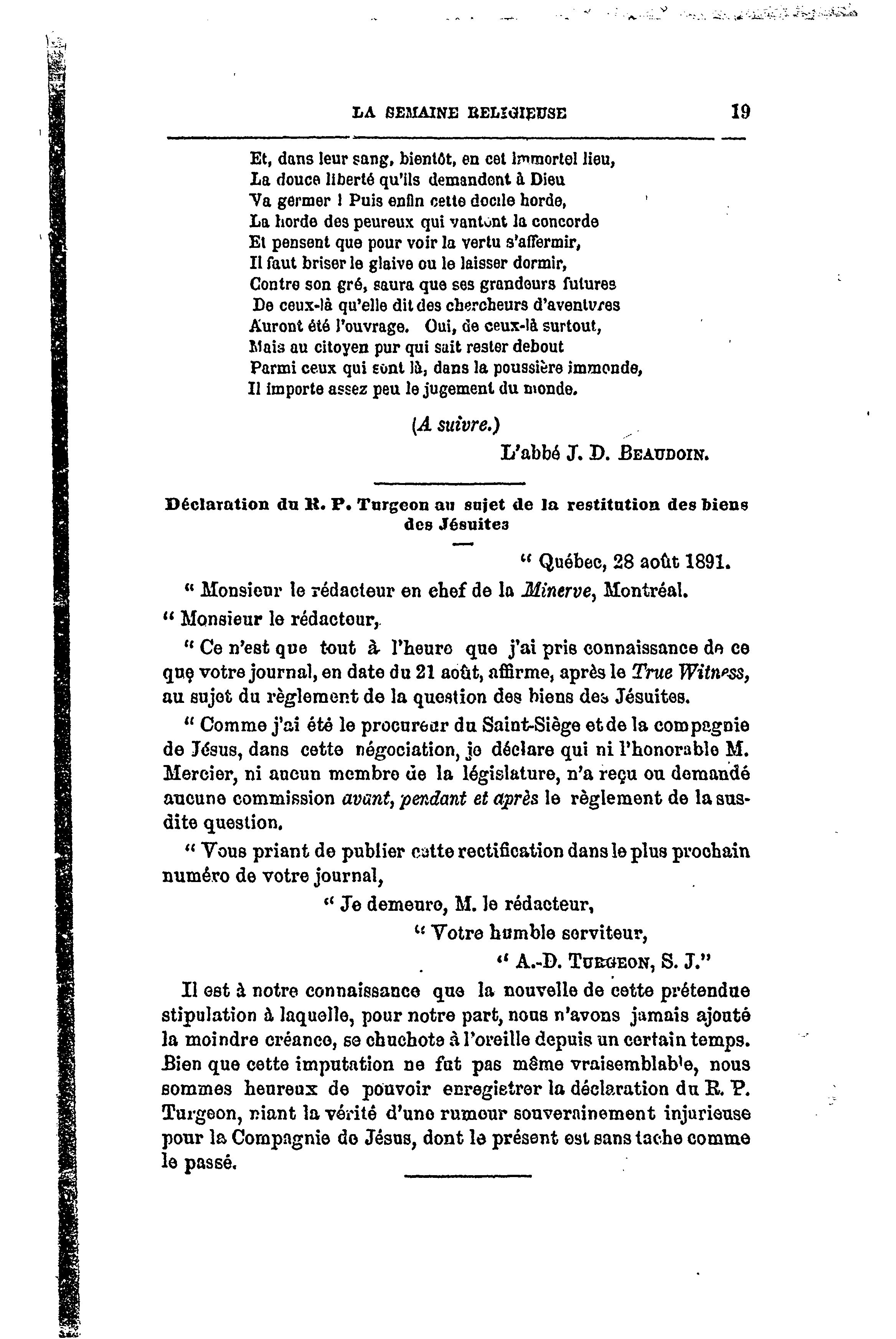 La semaine religieuse de Québec : [4e année, no 2 (12 sept. 1891)]