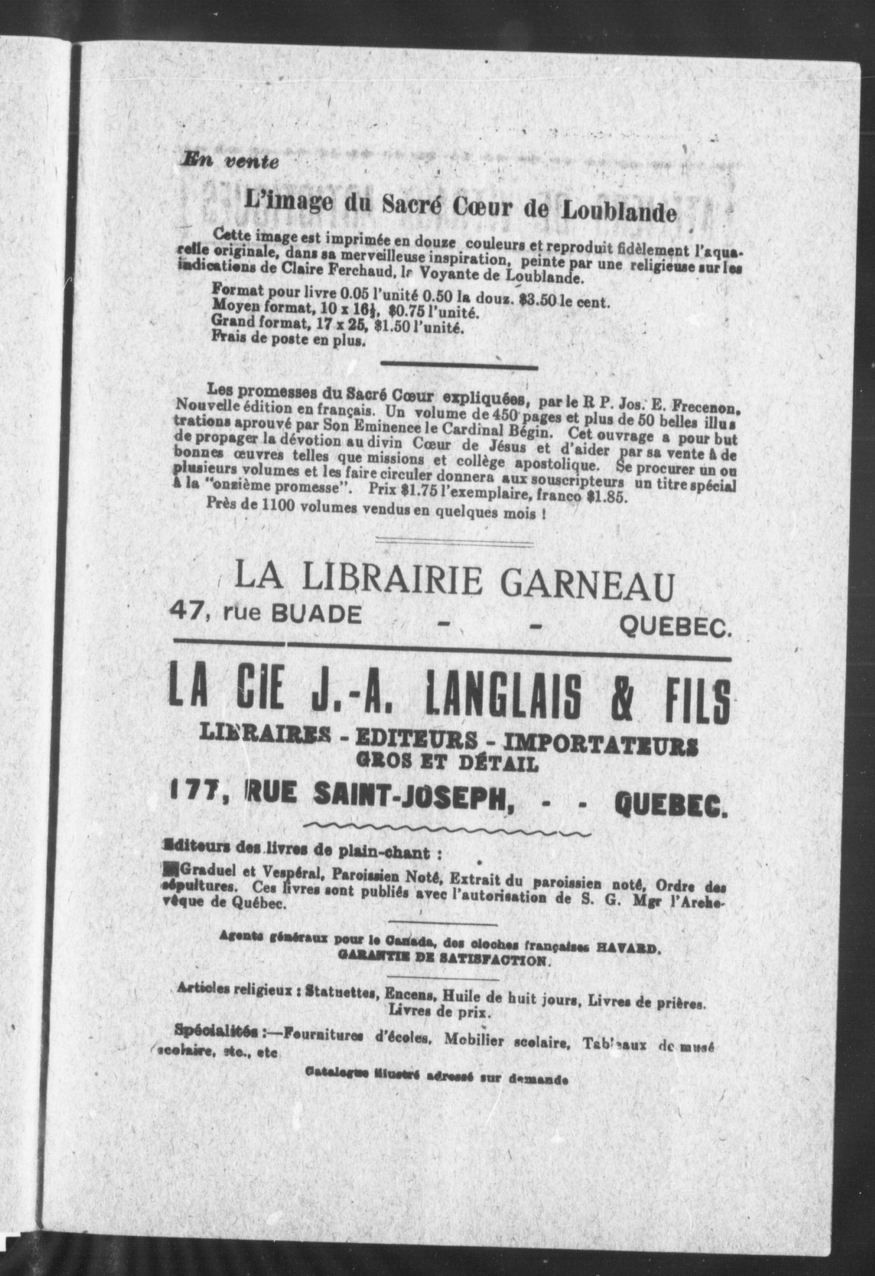 Semaine religieuse de Québec et Bulletin des oeuvres de l'Action sociale catholique