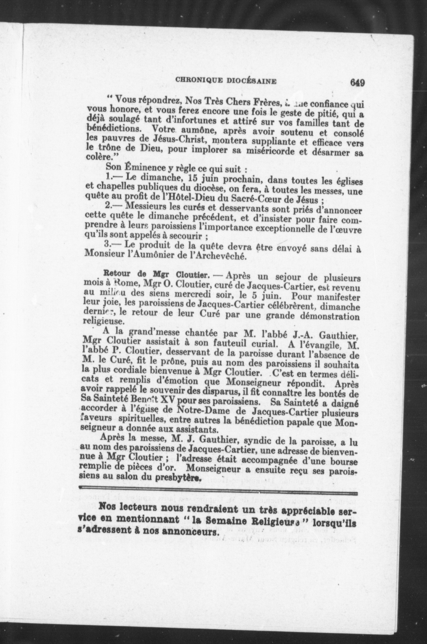 La semaine religieuse de Québec : 31e année, no 41 (12 juin 1919)