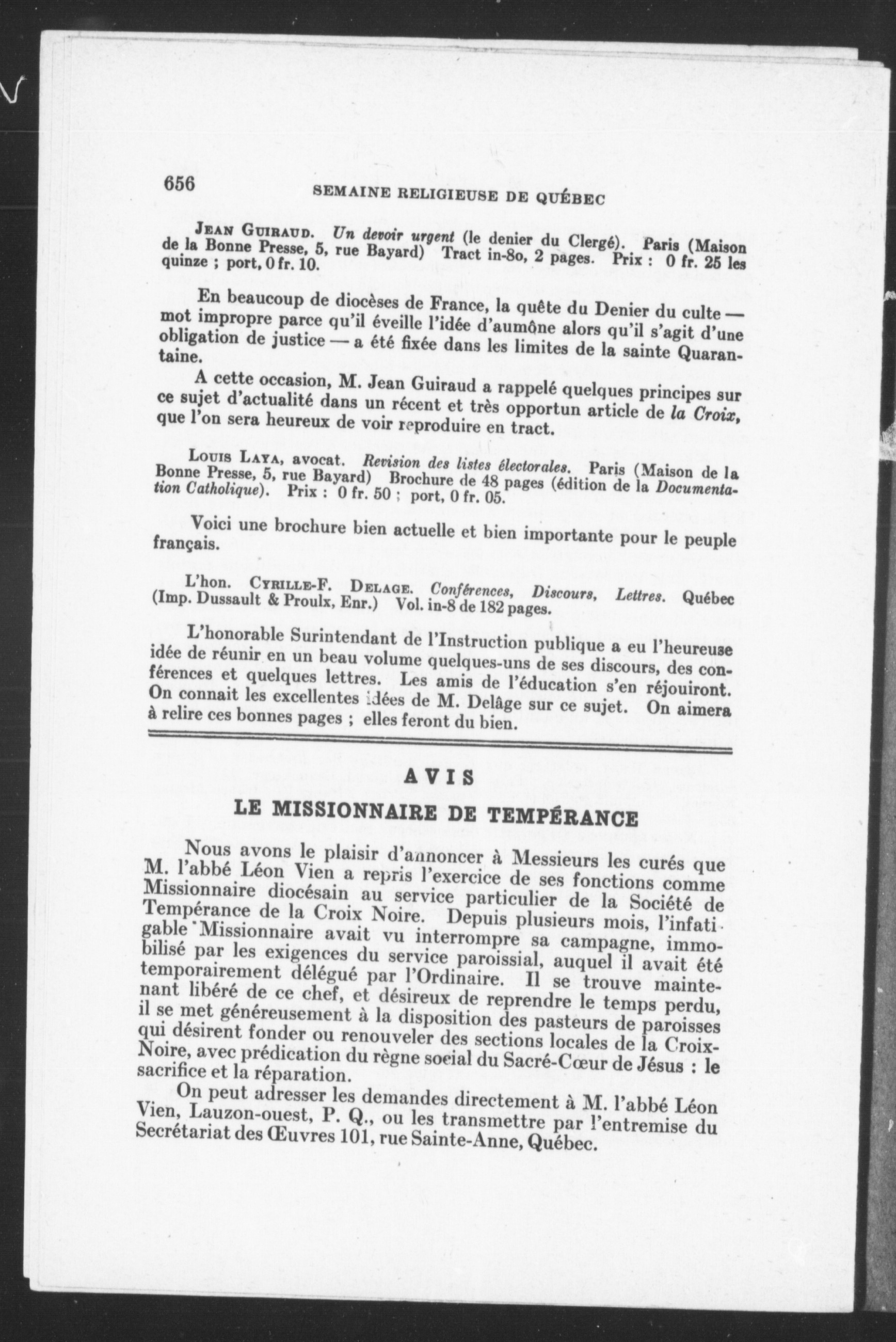 - Semaine religieuse de Québec et Bulletin des oeuvres de l'Action sociale catholique
