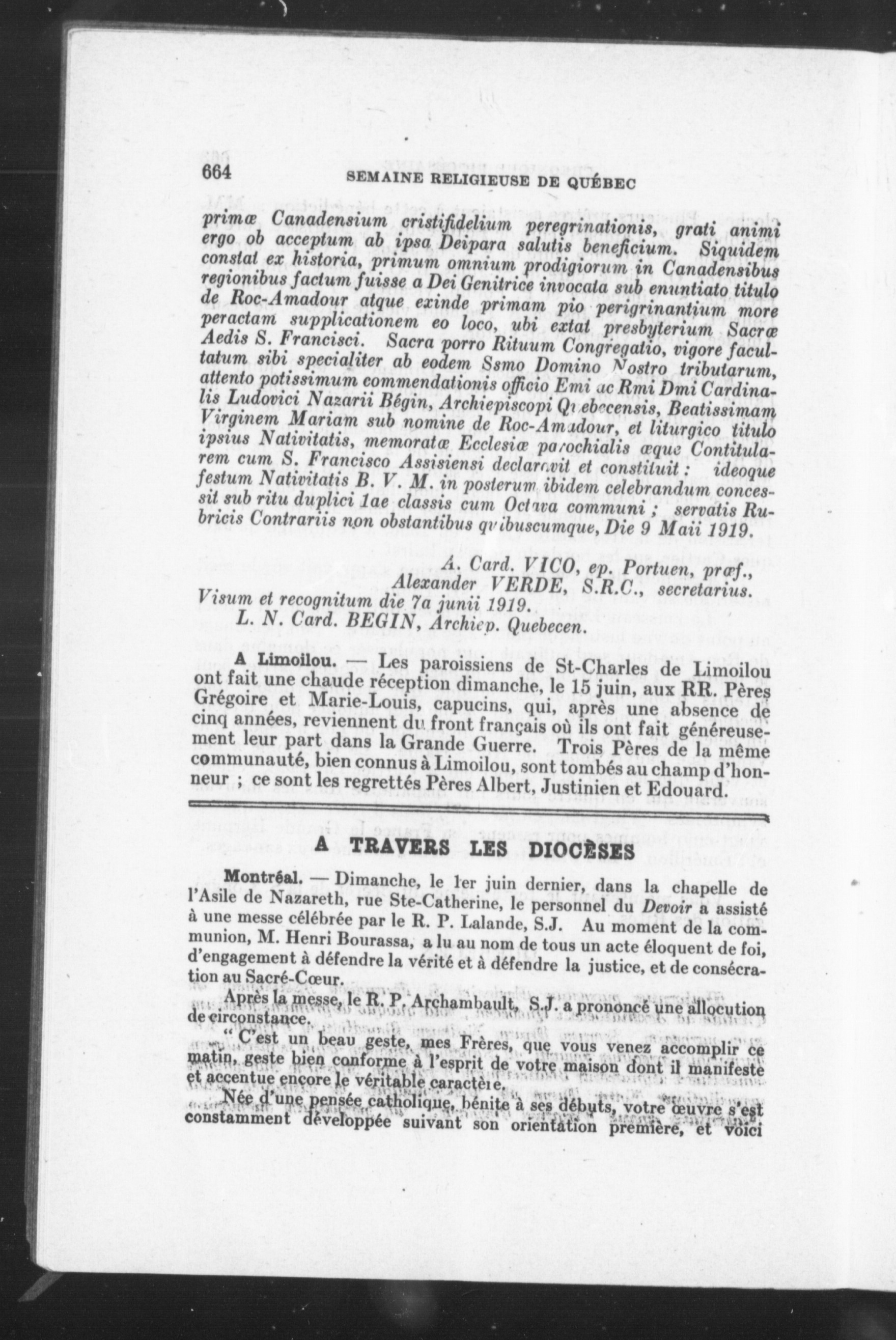 La semaine religieuse de Québec : 31e année, no 42 (19 juin 1919)