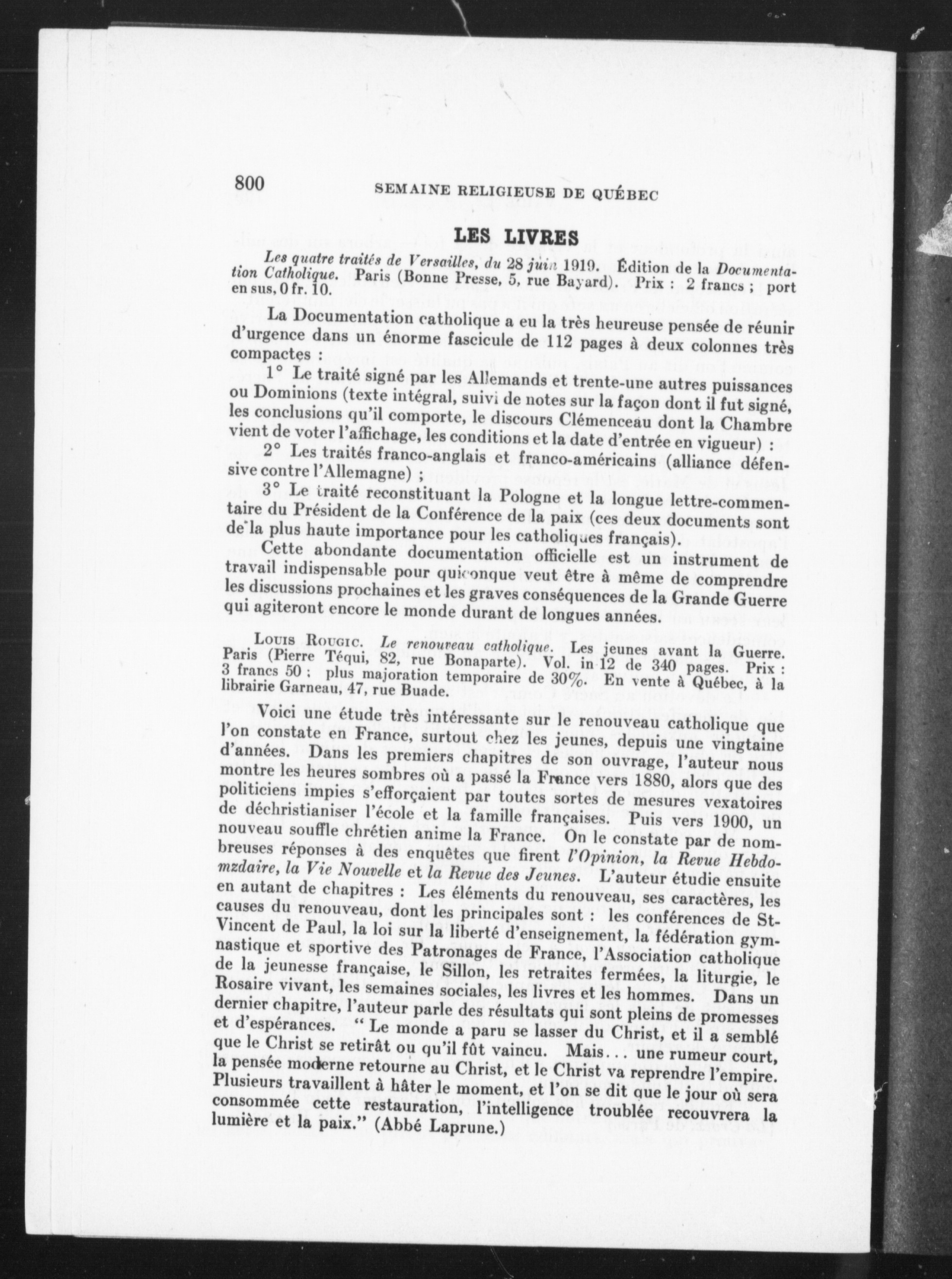 La semaine religieuse de Québec : 31e année, no 50 (14 août 1919)