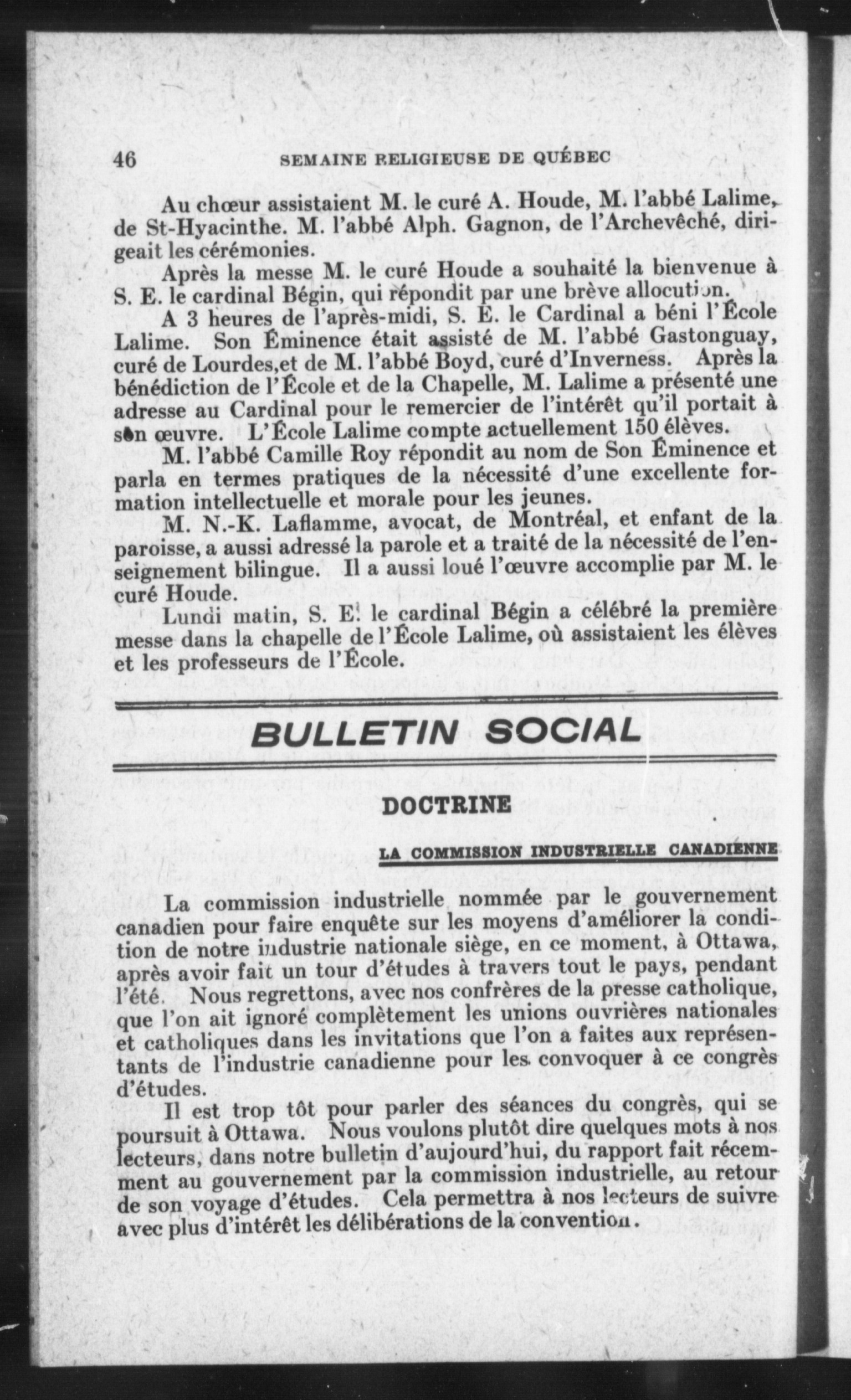 - Semaine religieuse de Québec et Bulletin des oeuvres de l'Action sociale catholique