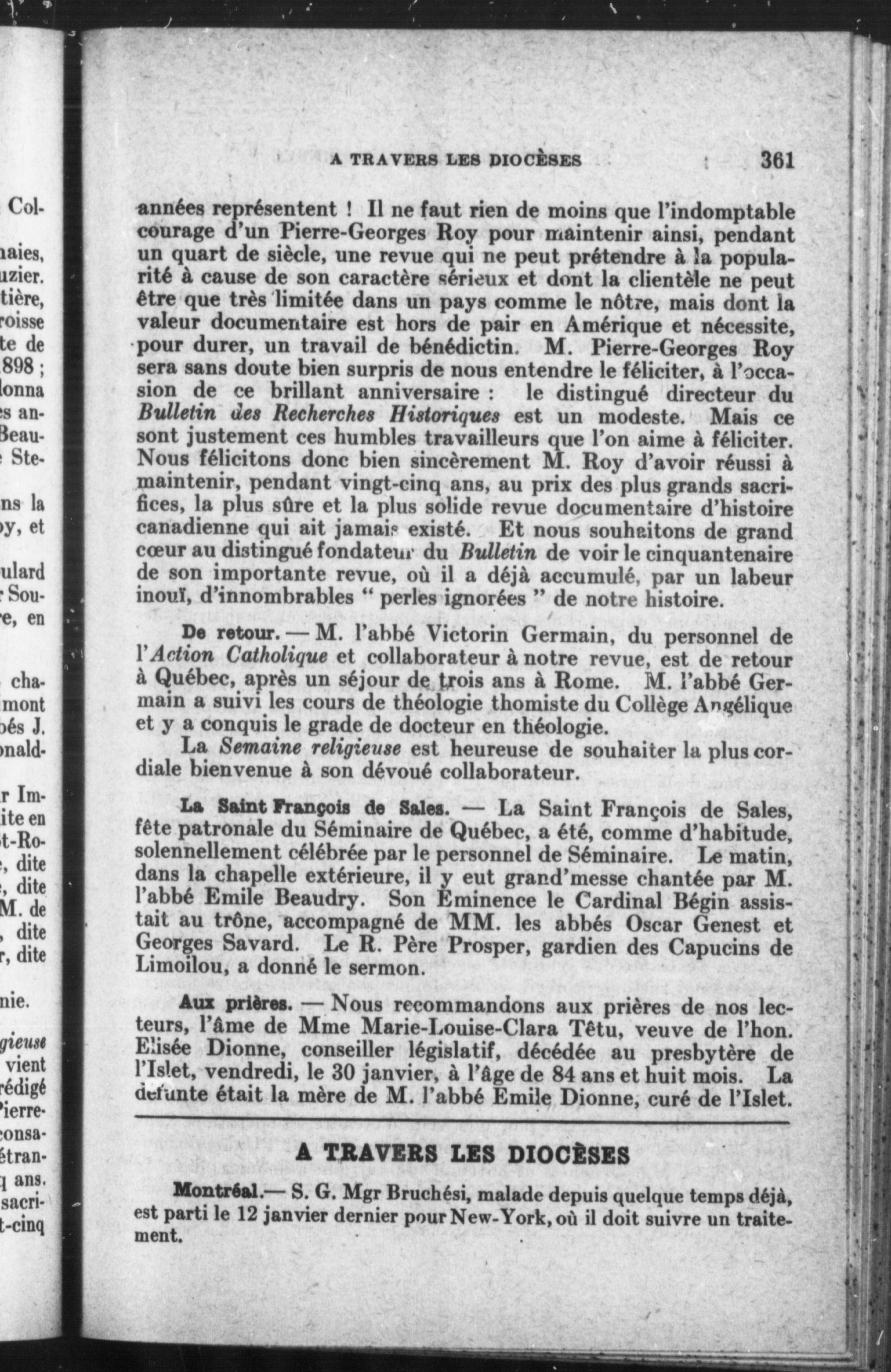 Semaine religieuse de Québec et Bulletin des oeuvres de l'Action sociale catholique
