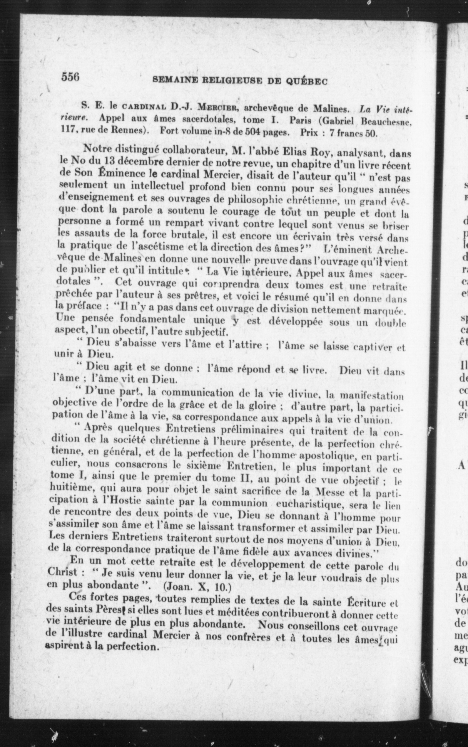 La semaine religieuse de Québec : 32e année, no 35 (29 avril 1920)