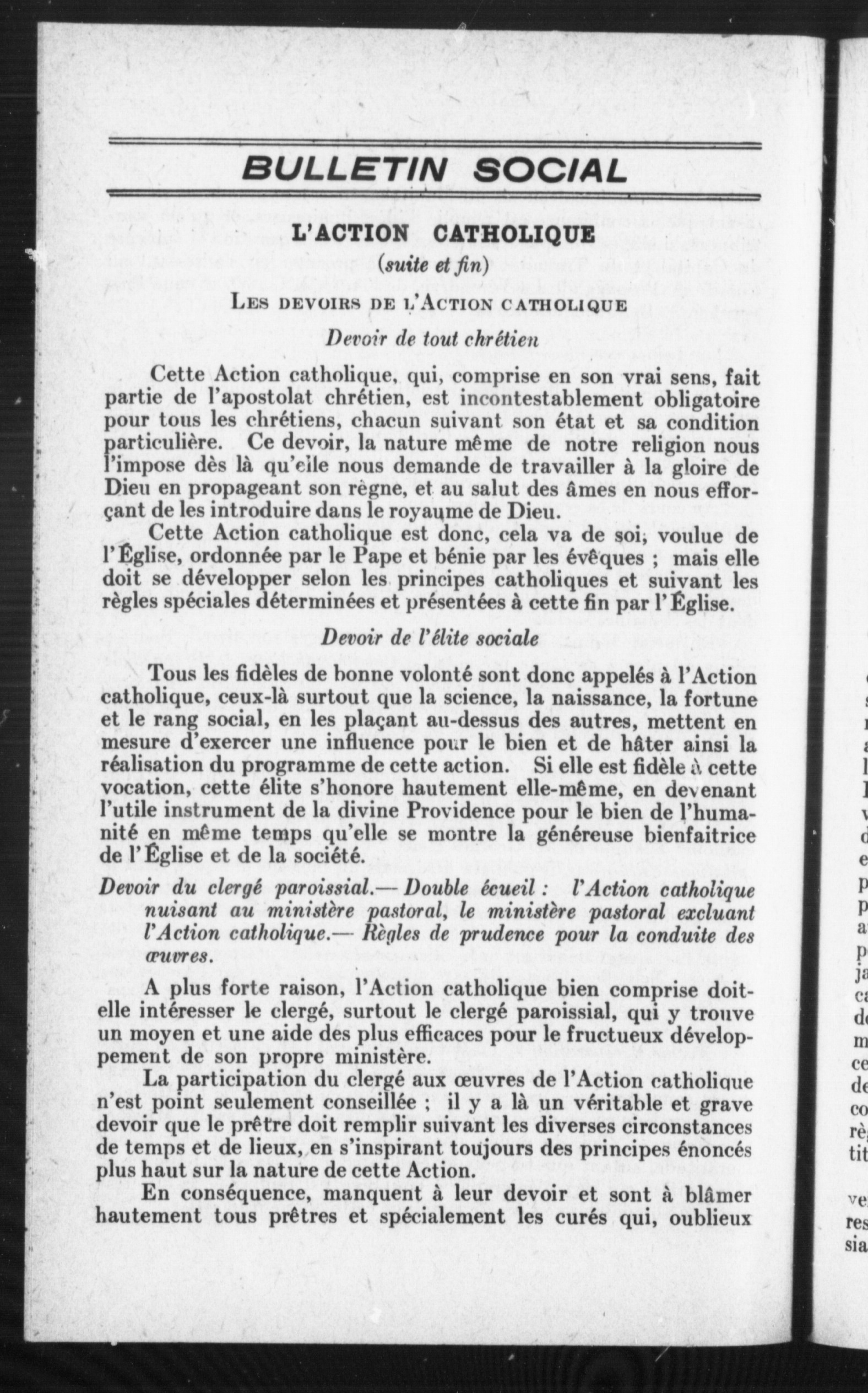 - Semaine religieuse de Québec et Bulletin des oeuvres de l'Action sociale catholique