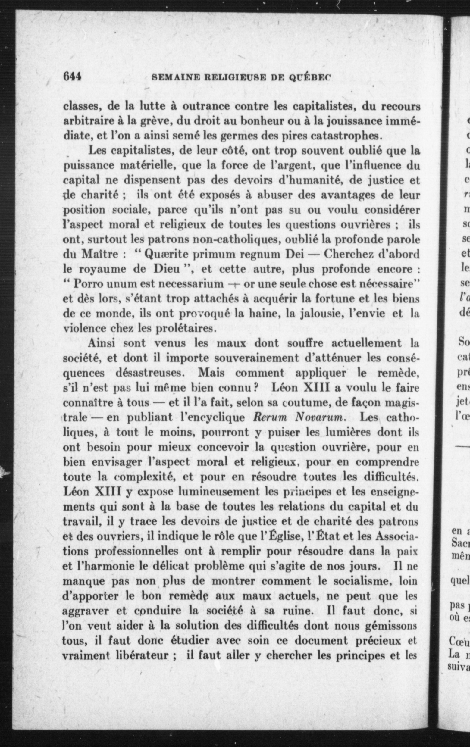 - Semaine religieuse de Québec et Bulletin des oeuvres de l'Action sociale catholique