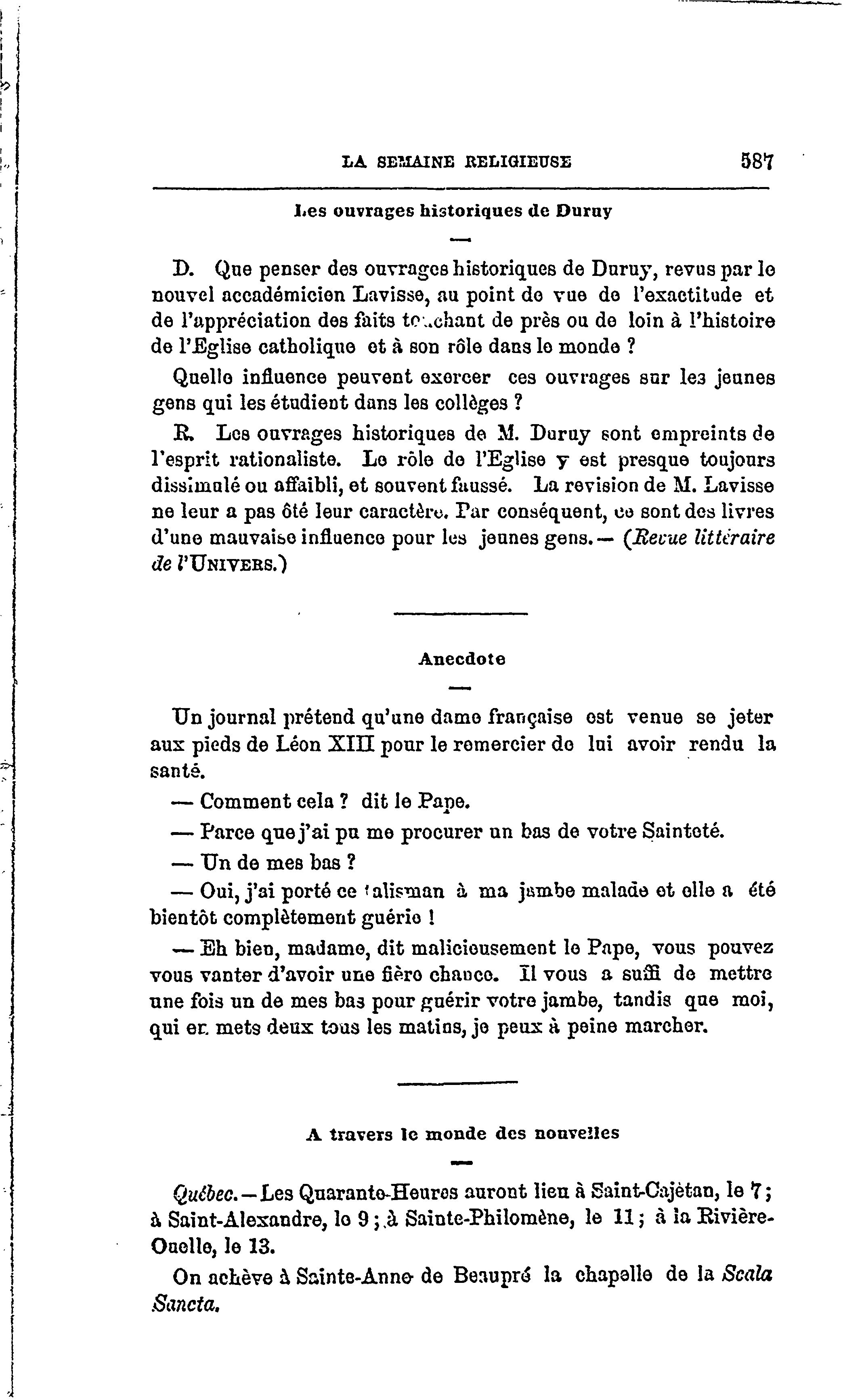 La semaine religieuse de Québec [4e année, no 49 (6 août 1892)]