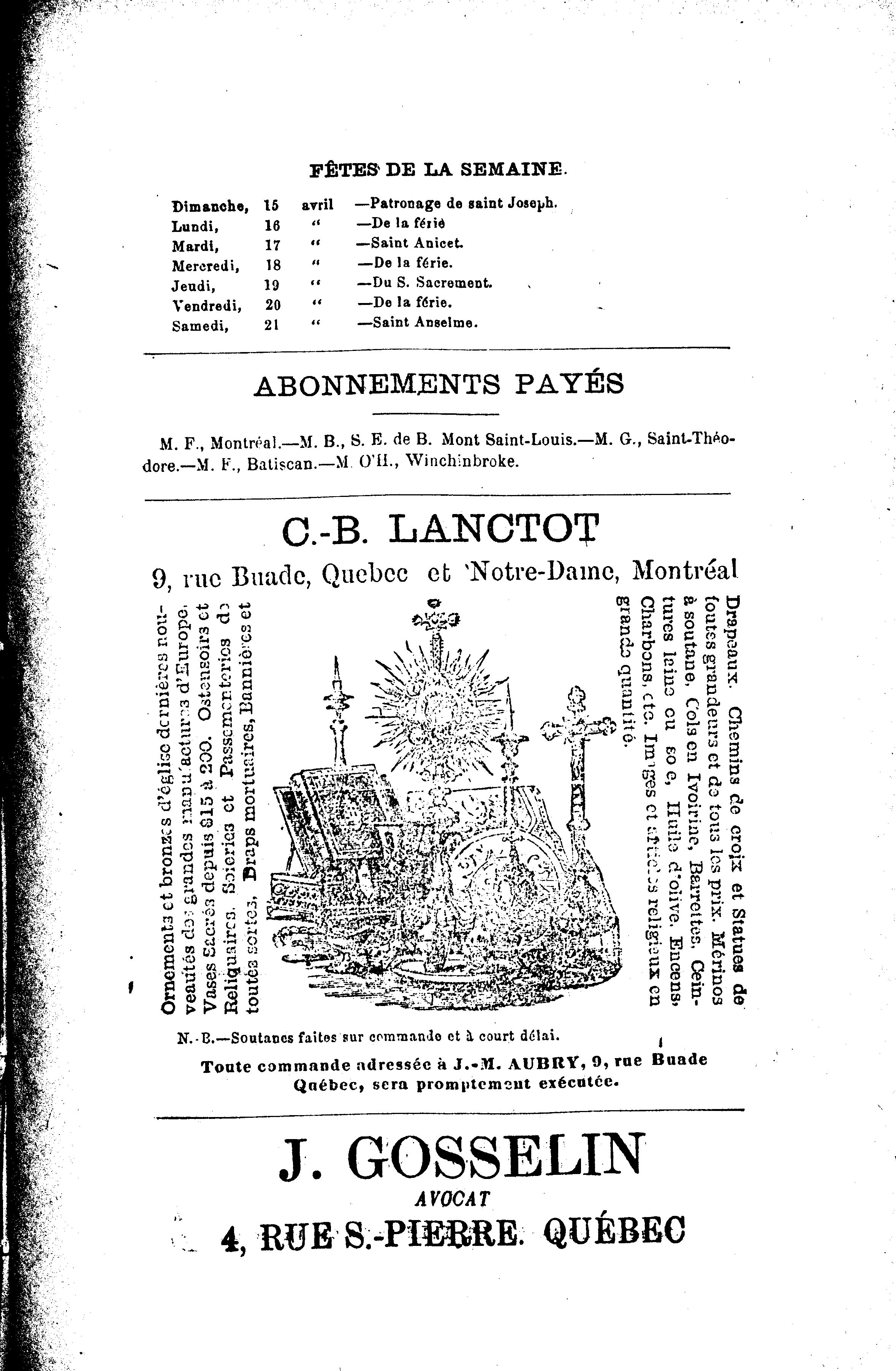 [Québec] : D. Gosselin, [1894]; 17 images avec recherche en texte intégral