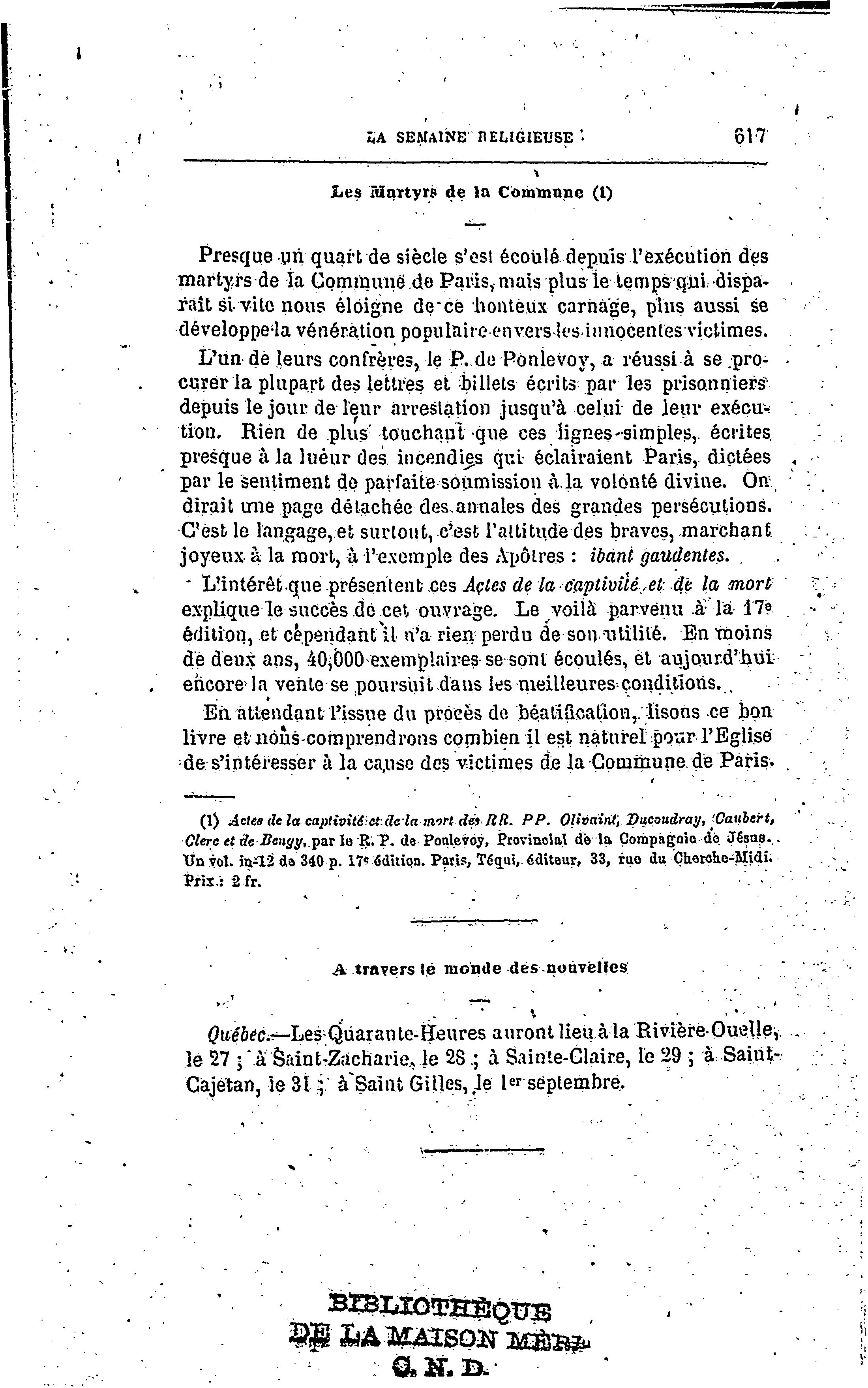 - La semaine religieuse de Québec [Vol. 6, no 52 (25 août 1894)]