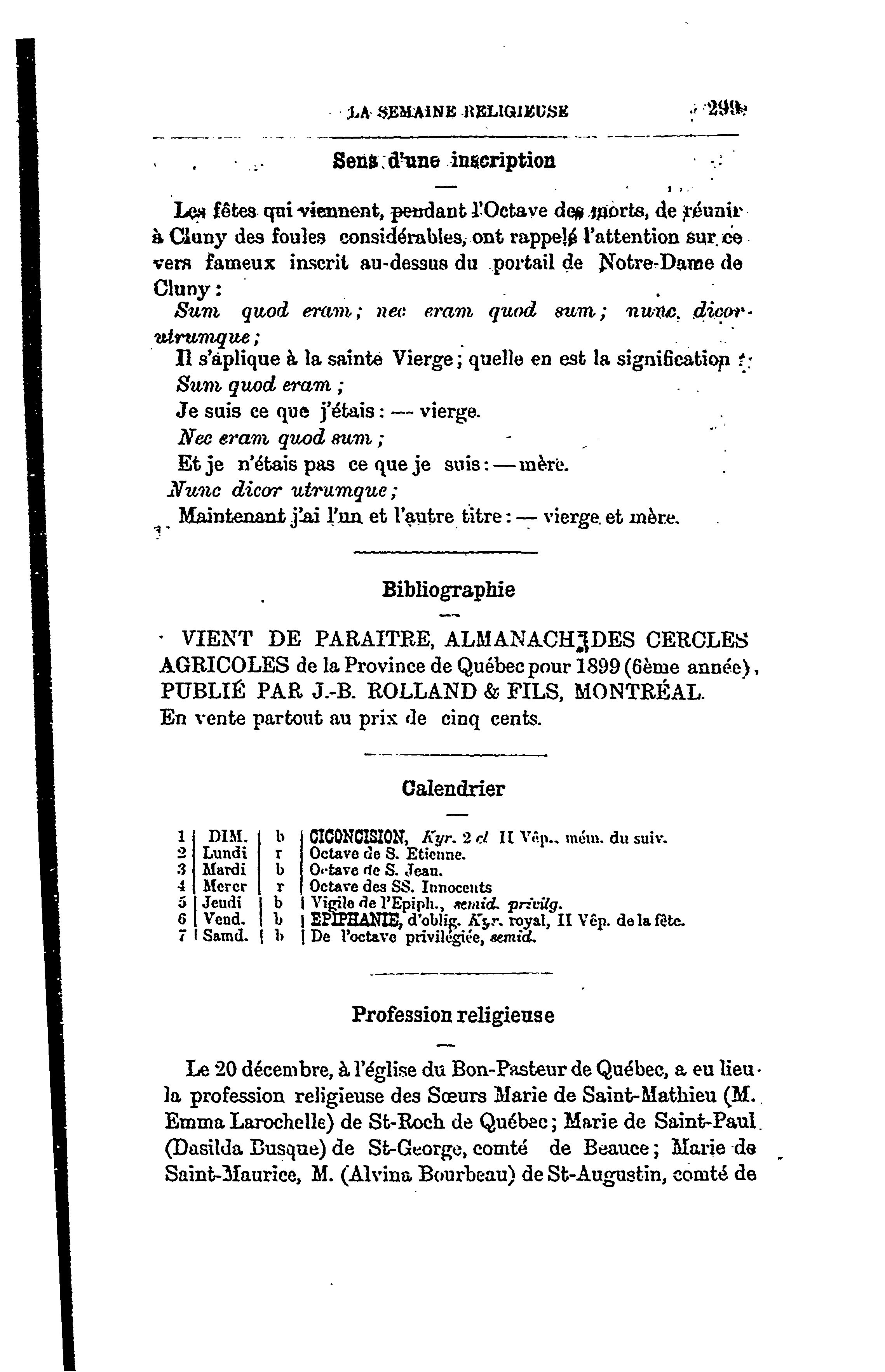 La semaine religieuse de Québec : [Vol. 11], no 19 (31 déc. 1898)]