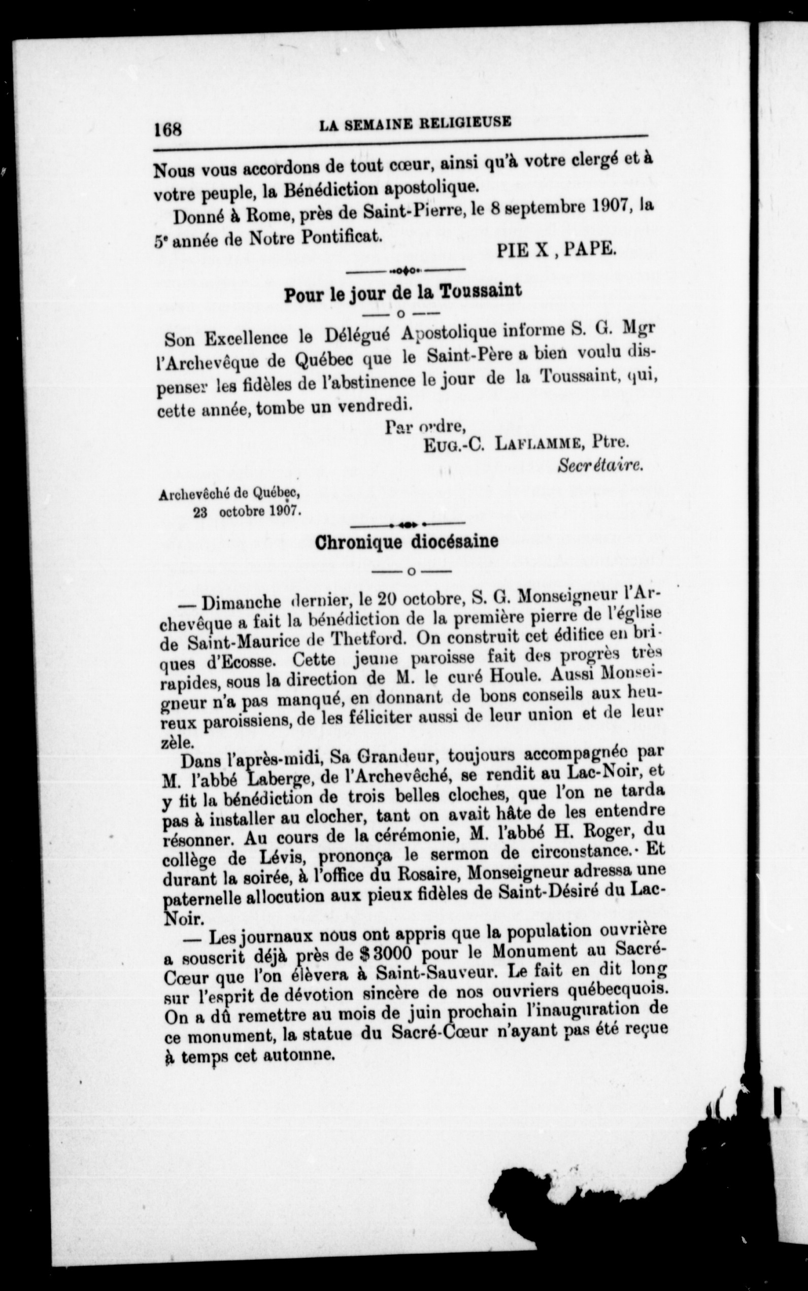 La semaine religieuse de Québec : Vol. 20, no 11 (26 oct. 1907)