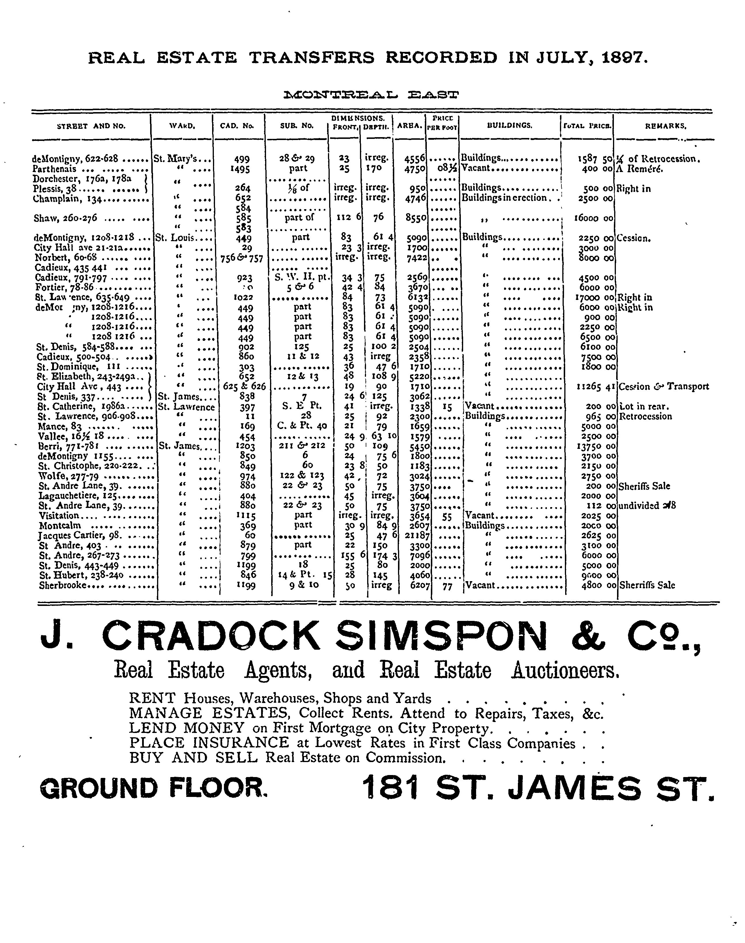 Aide Montreal : J. Cradock Simpson & Co., [1897]; 29 images avec recherche en texte intégral
