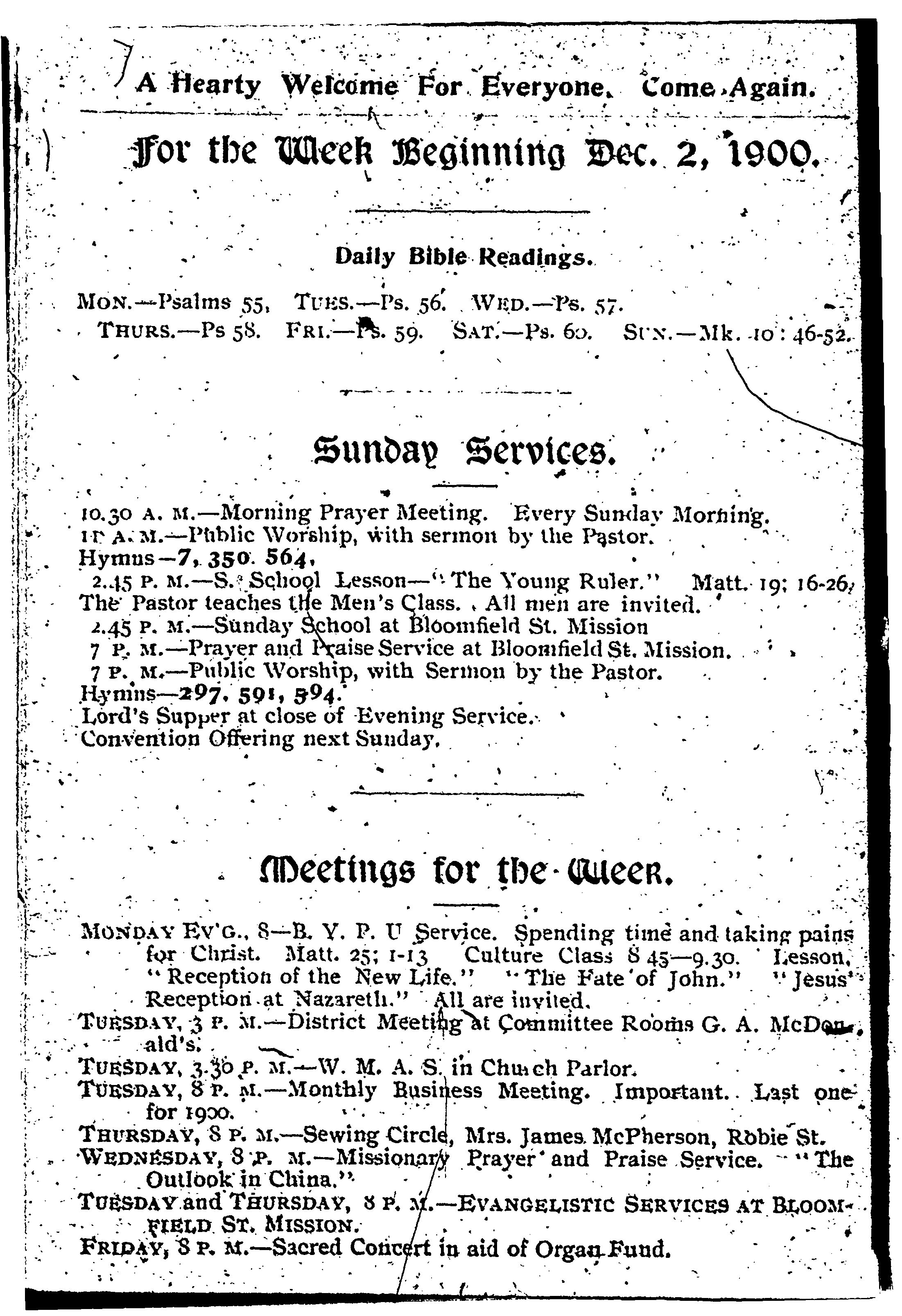 - Our calendar / the North Baptist Church ... : Vol. 3, no. 47 (Dec. 2, 1900)