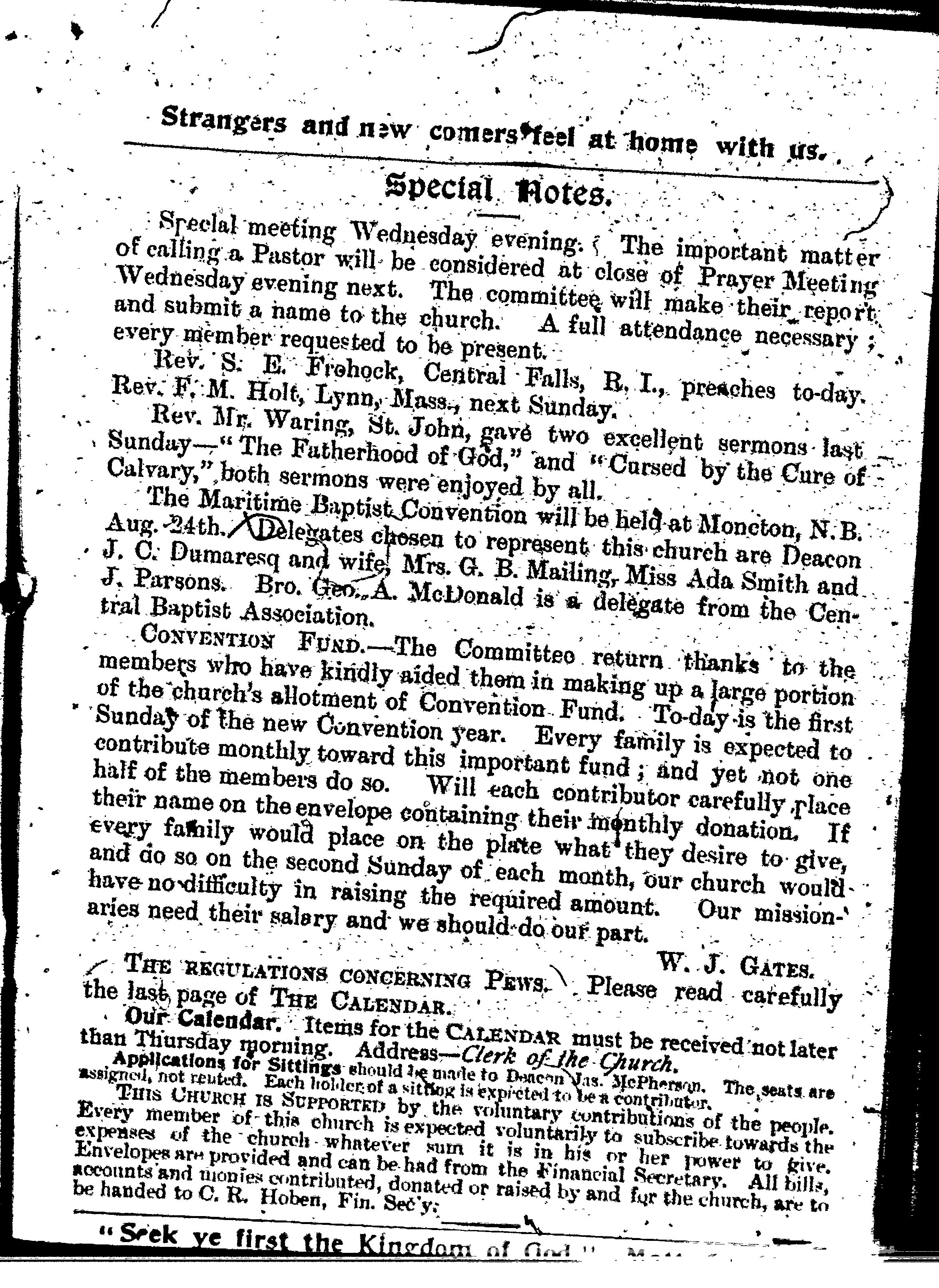 Our calendar / the North Baptist Church ... : Vol. 4, no. 33 (Aug. 18, 1901)