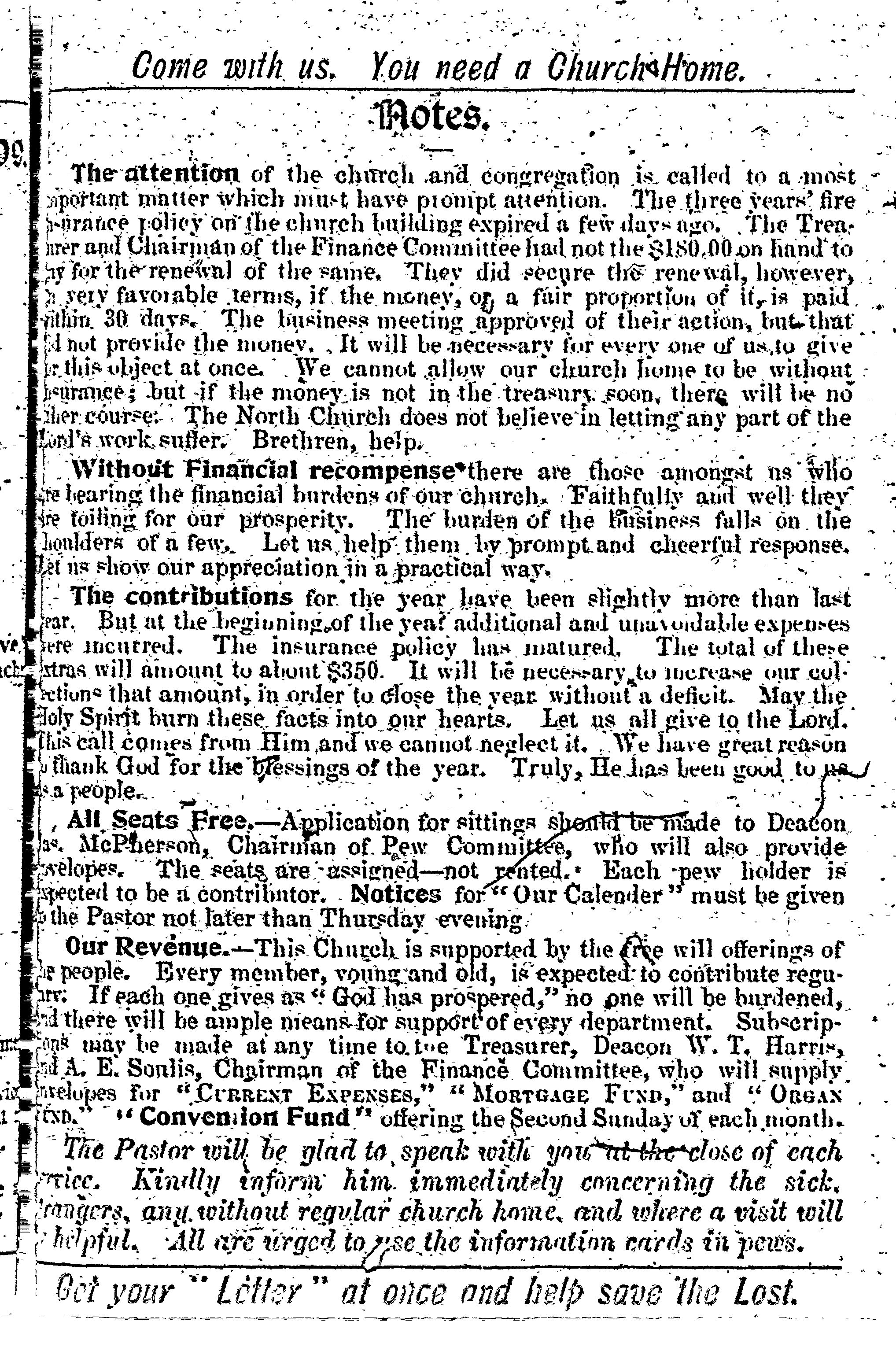- Our calendar / the North Baptist Church ... : Vol. 2, no. 37 (Sept. 10, 1899)