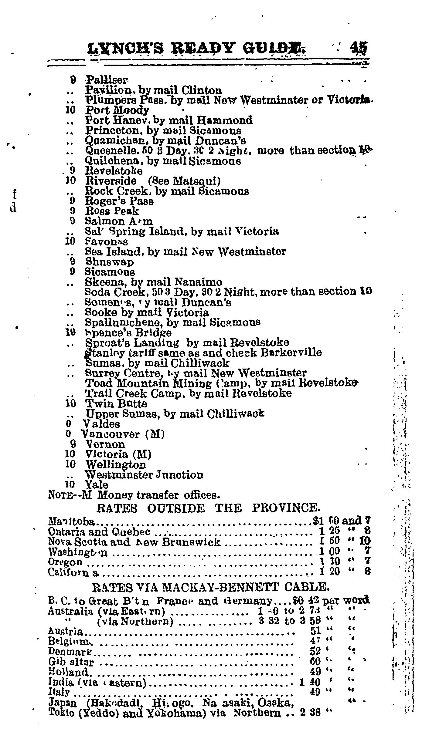 - Lynch's ready guide to Victoria and British Columbia [Feb. 1893]