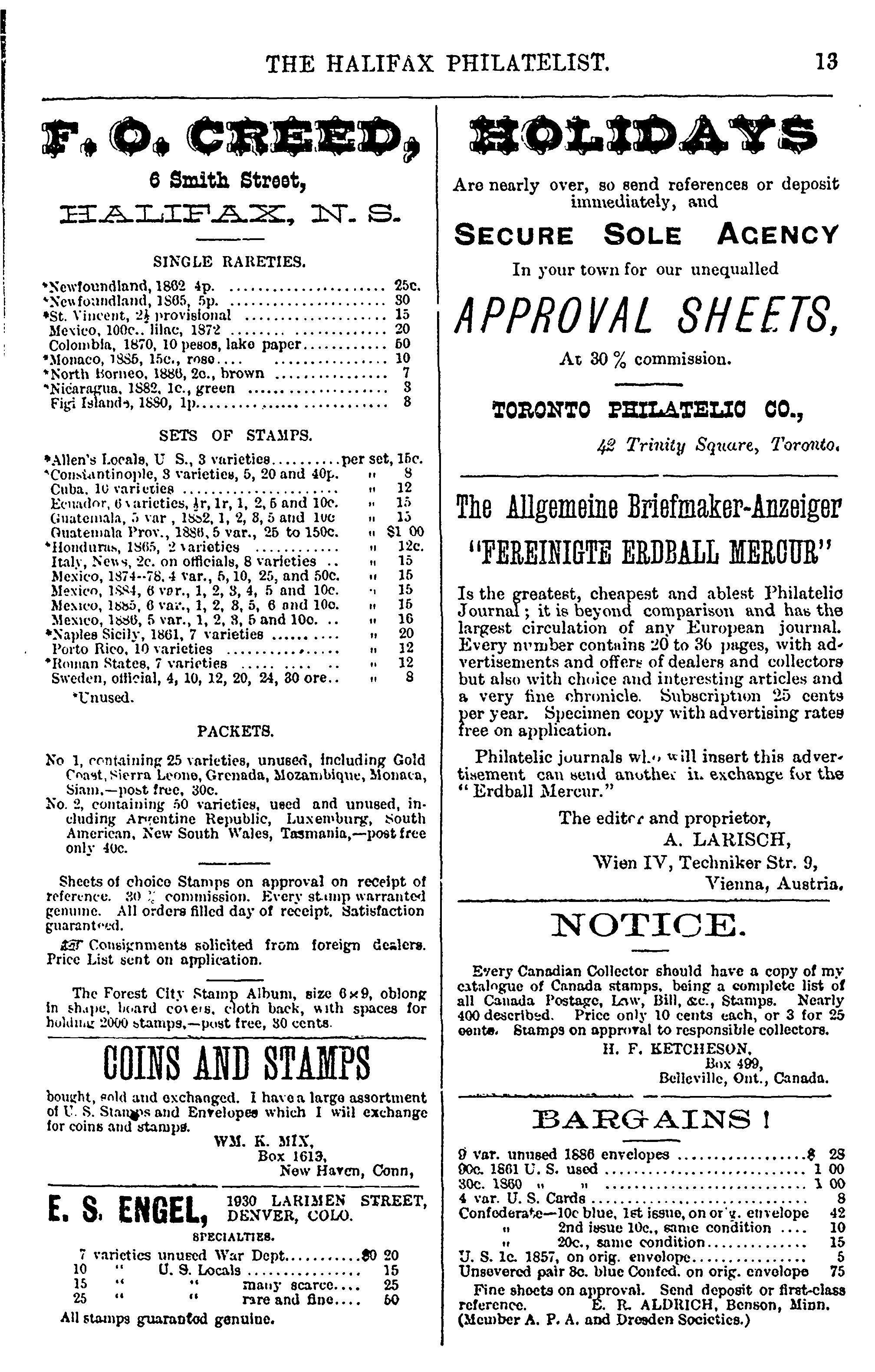 Halifax, N.S. : Halifax Philatelic Co., [1887]