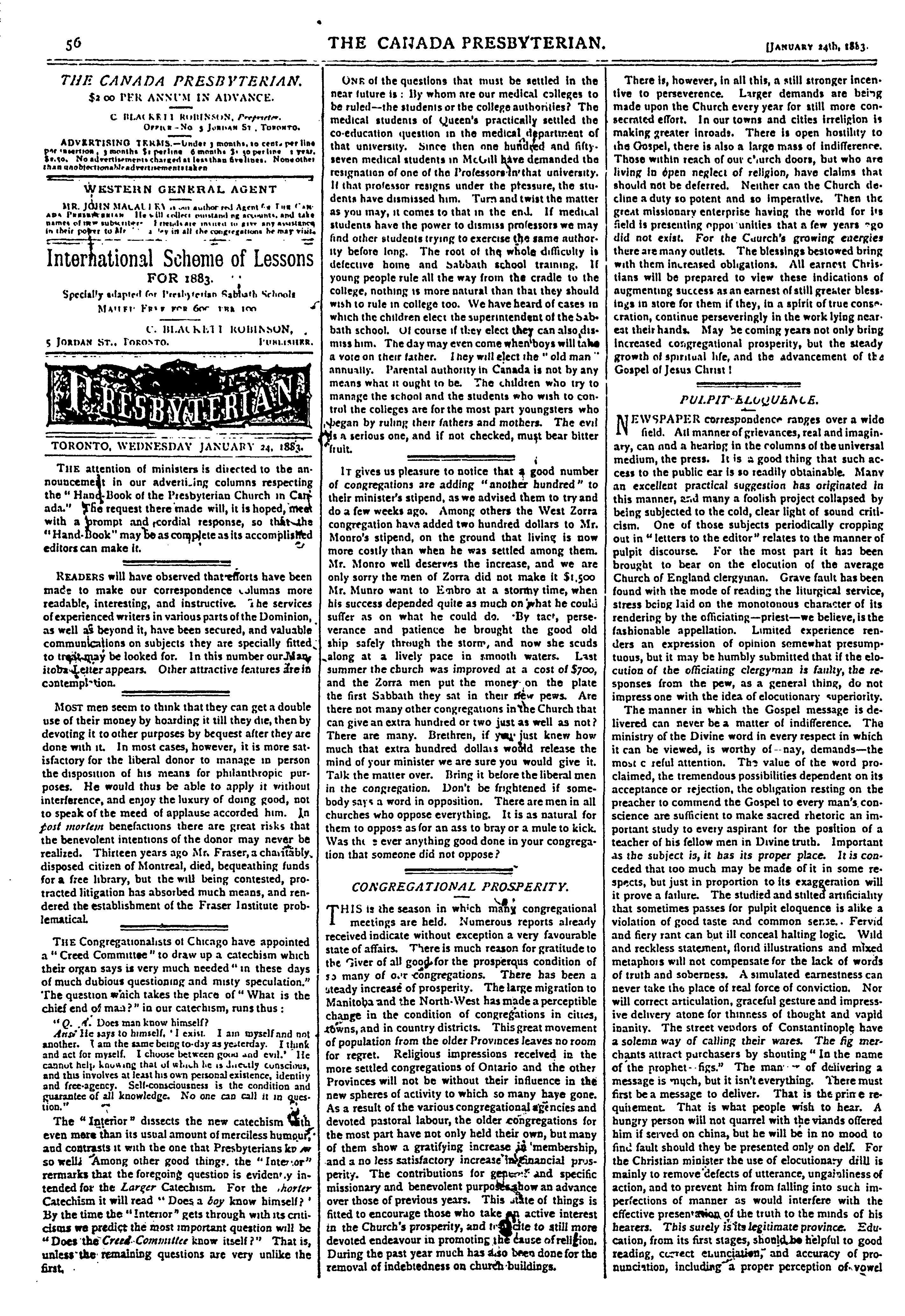 - Canada Presbyterian [Vol. 11, no. 4 (Jan. 24, 1883)]