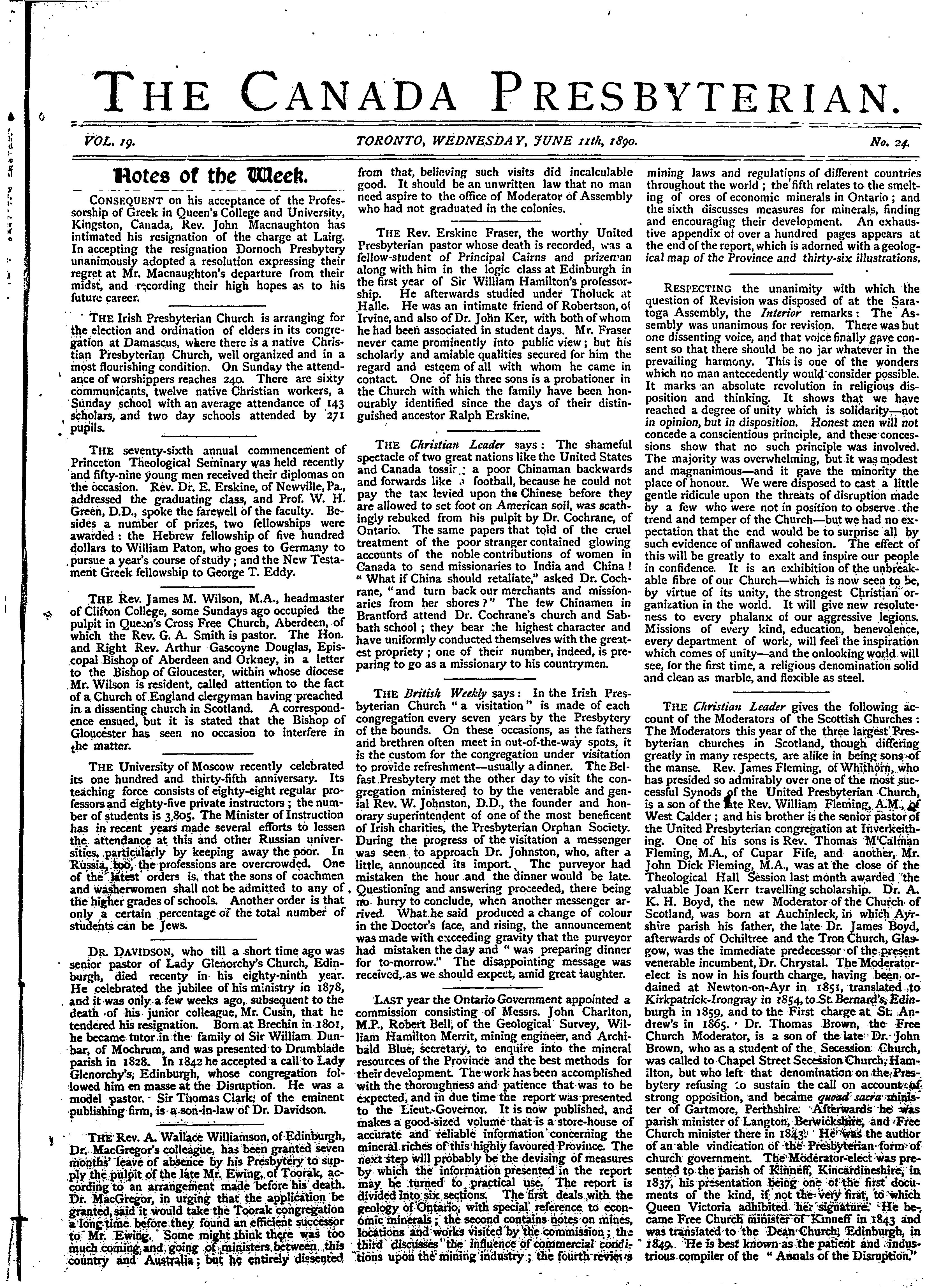 - The Canada Presbyterian [Vol. 19, no. 24 (June 11, 1890)]