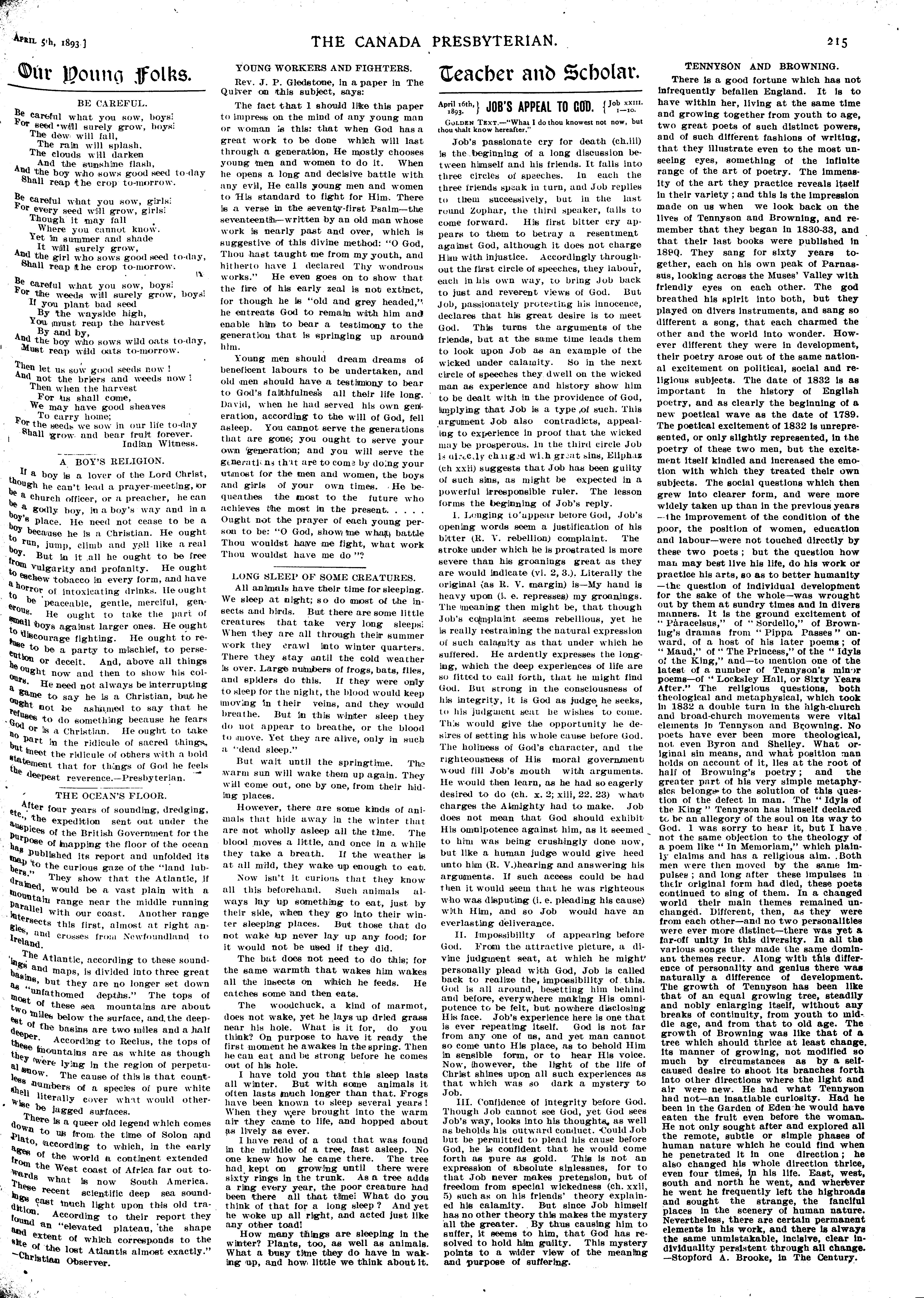The Canada Presbyterian [Vol. 22, no. 14 (Apr. 5, 1893)]