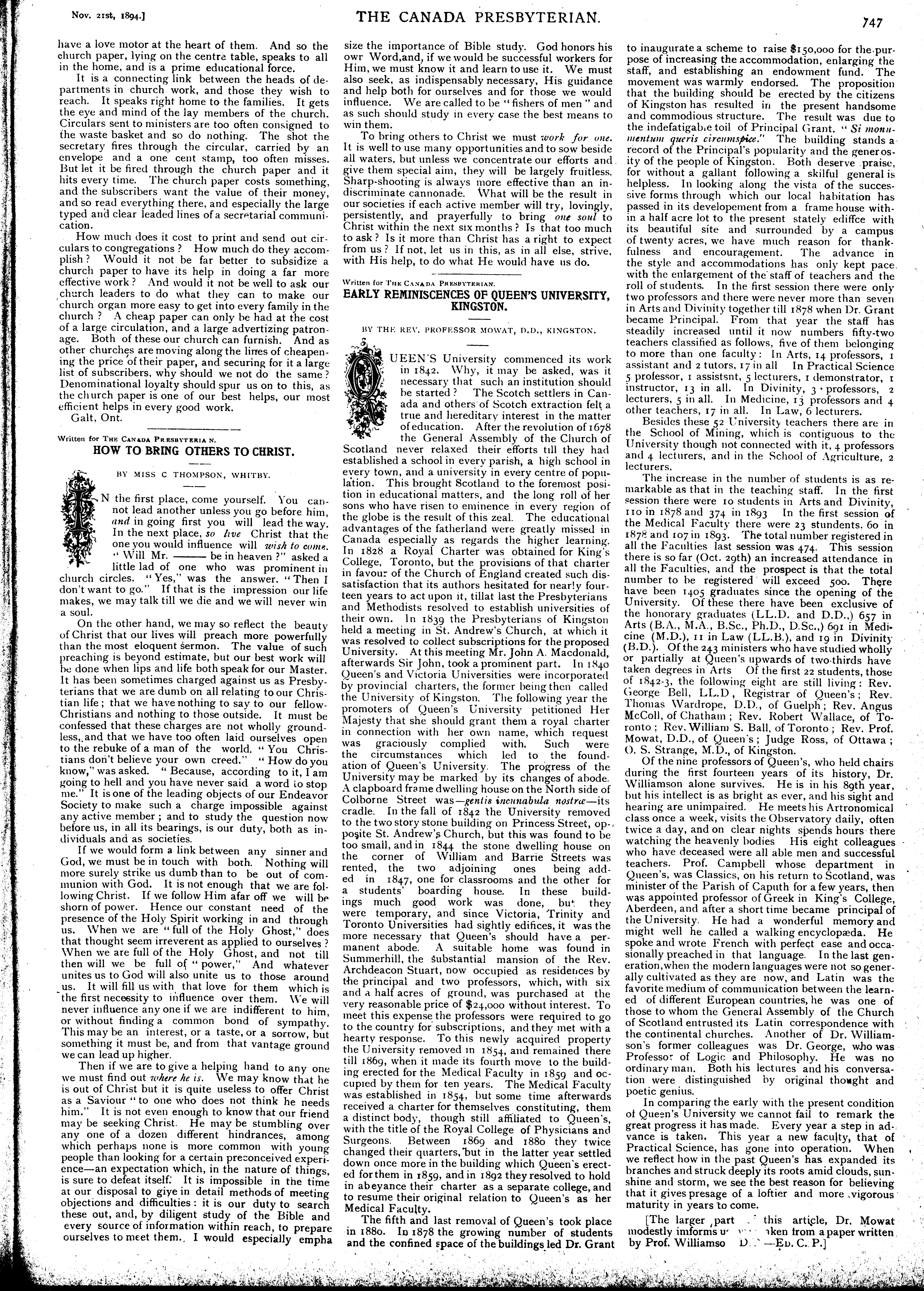 The Canada Presbyterian [Vol. 23, no. 47 (Nov. 21, 1894)]