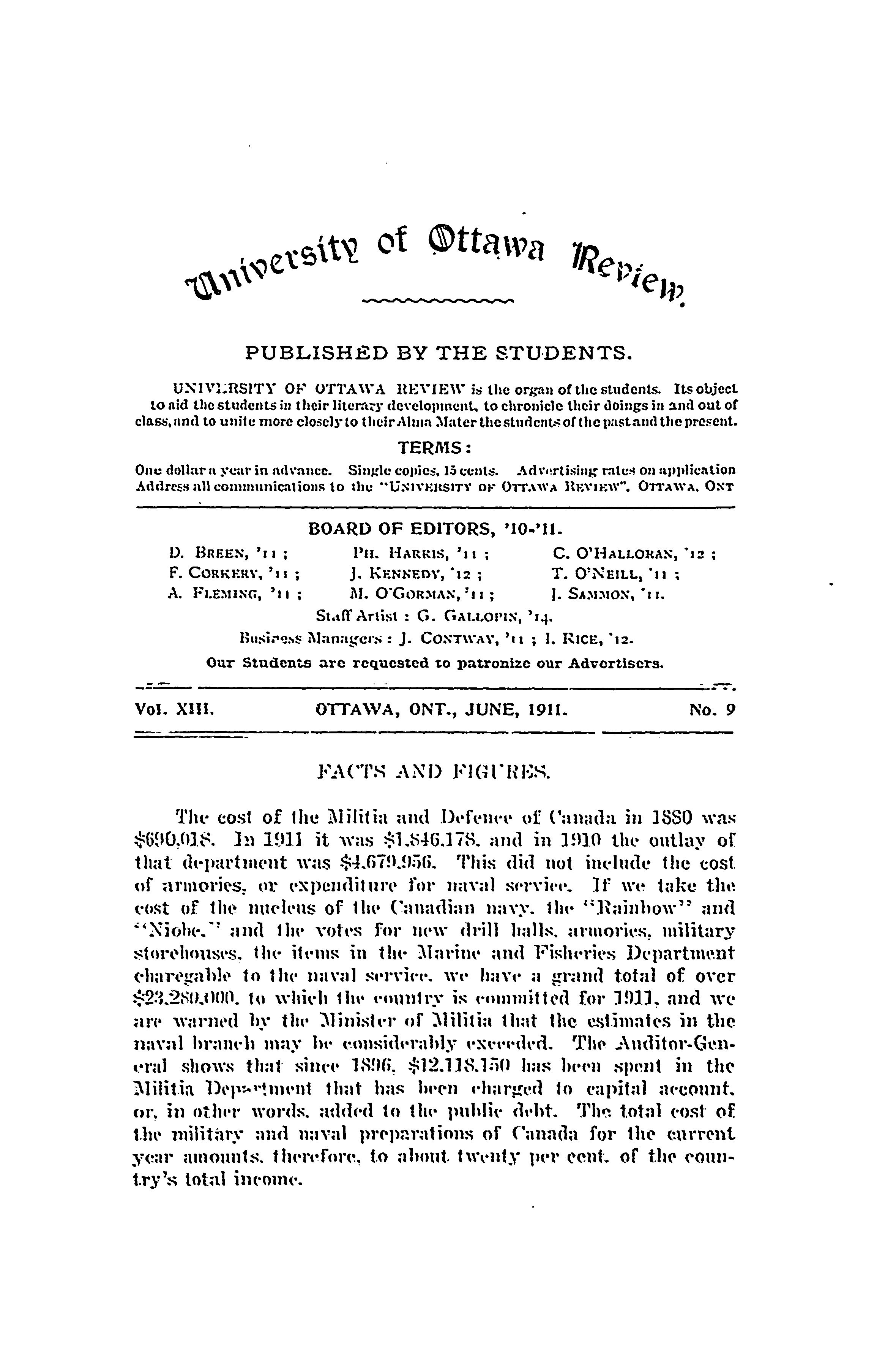 University of Ottawa review : Vol. 13, no. 9 (June 1911)
