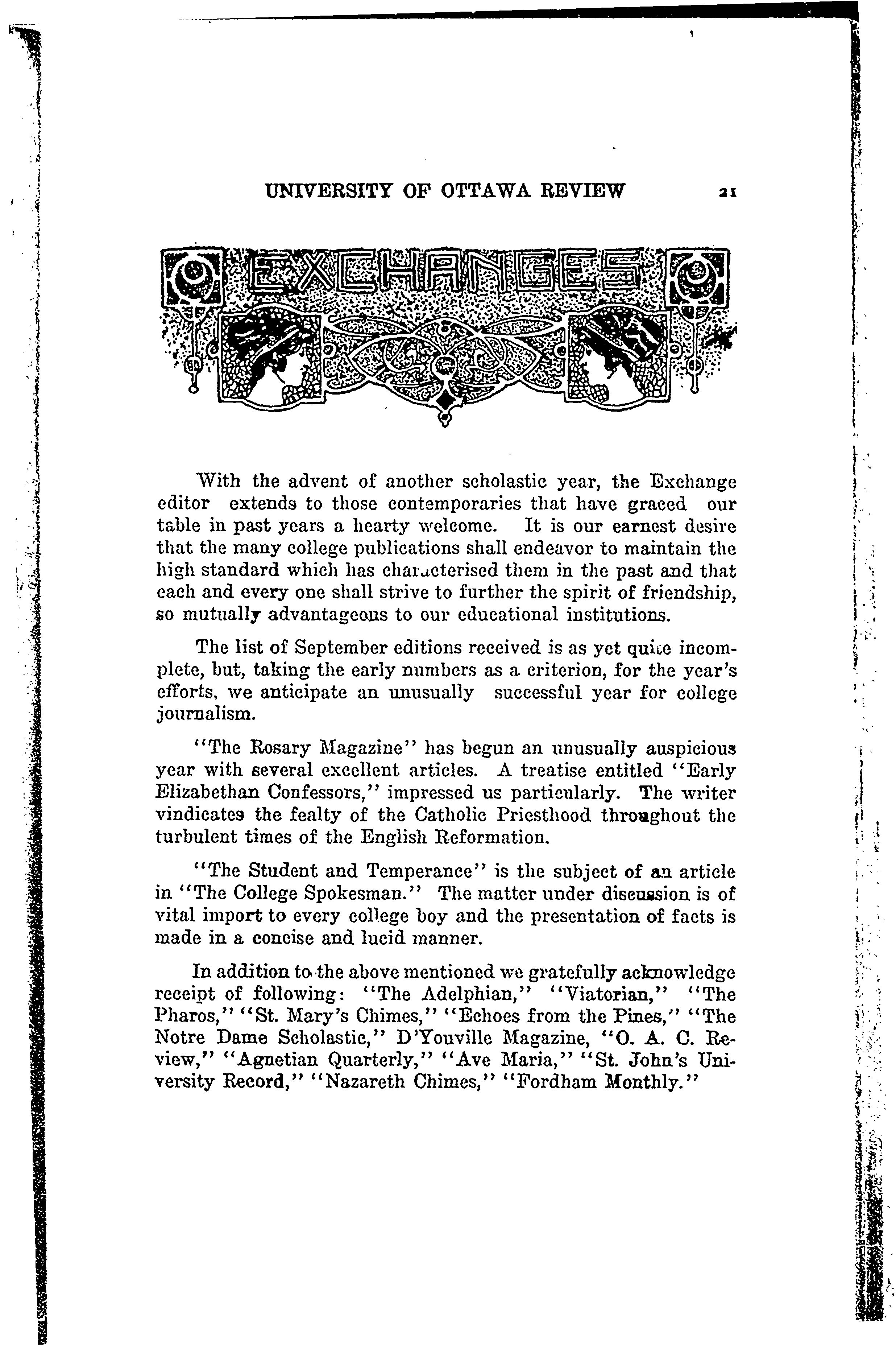 University of Ottawa review : Vol. 14, no. 1 (Oct. 1911)