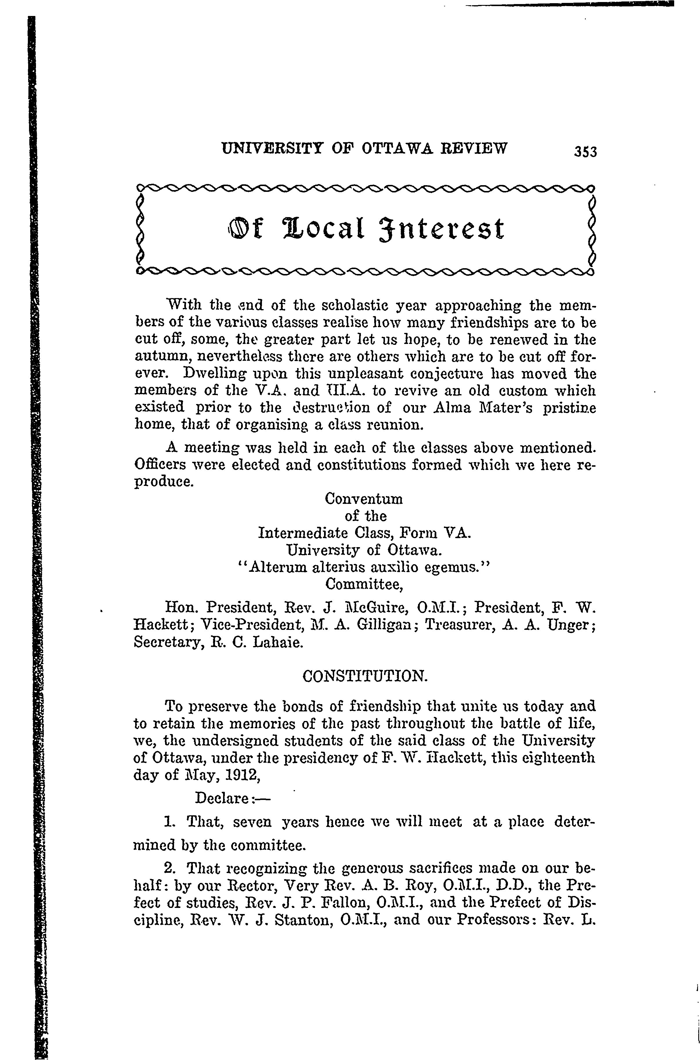 University of Ottawa review : Vol. 14, no. 9 (June 1912)