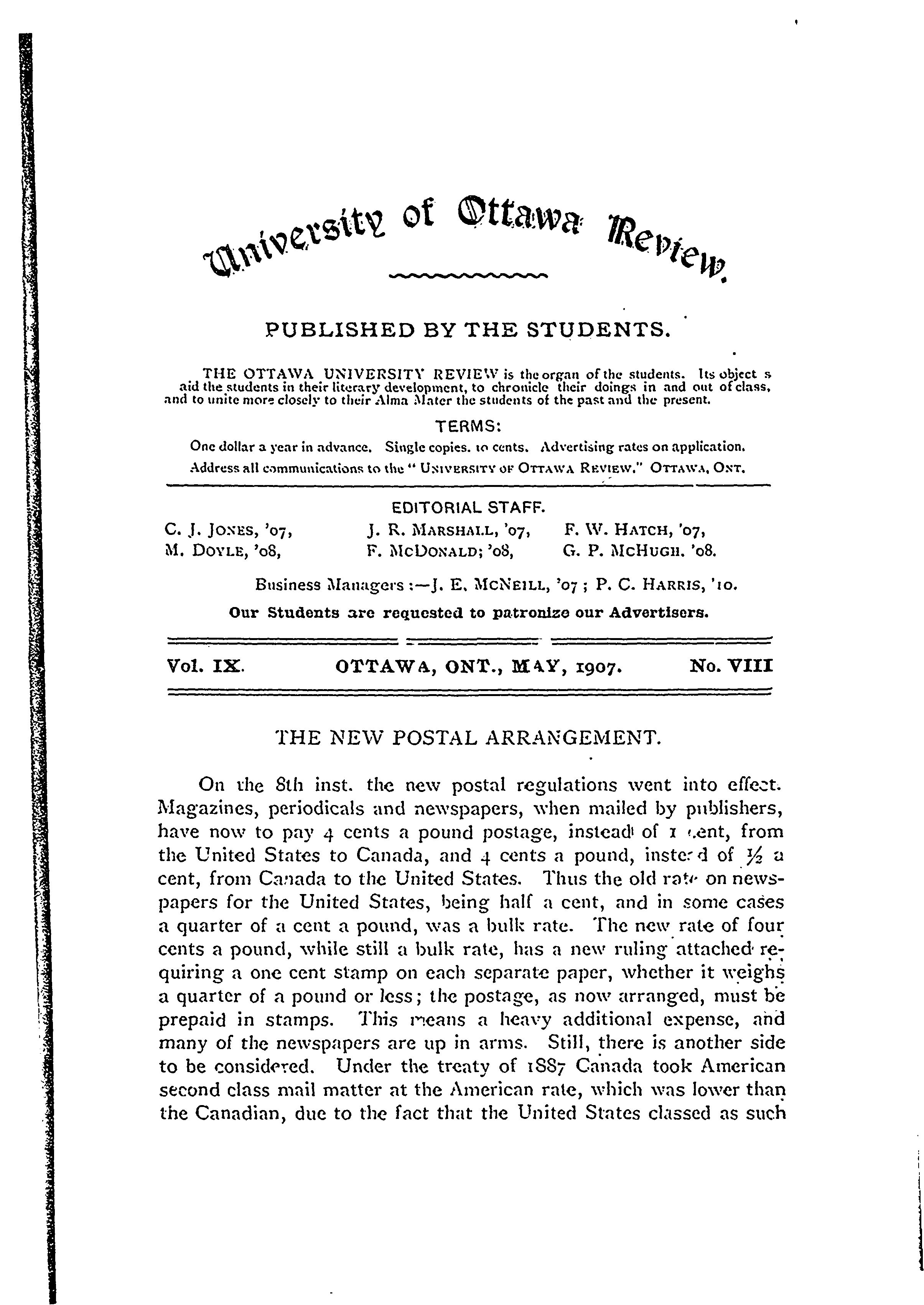 University of Ottawa review : Vol. 9, no. 8 (May 1907)