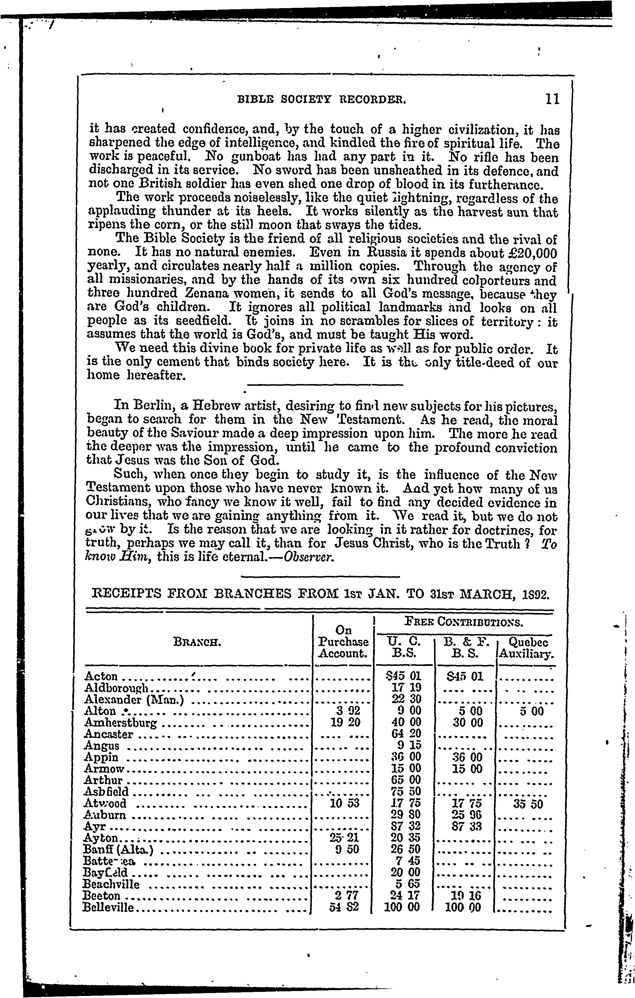 Bible society recorder : [Vol. 24, no. 1] (Apr. 1892)]