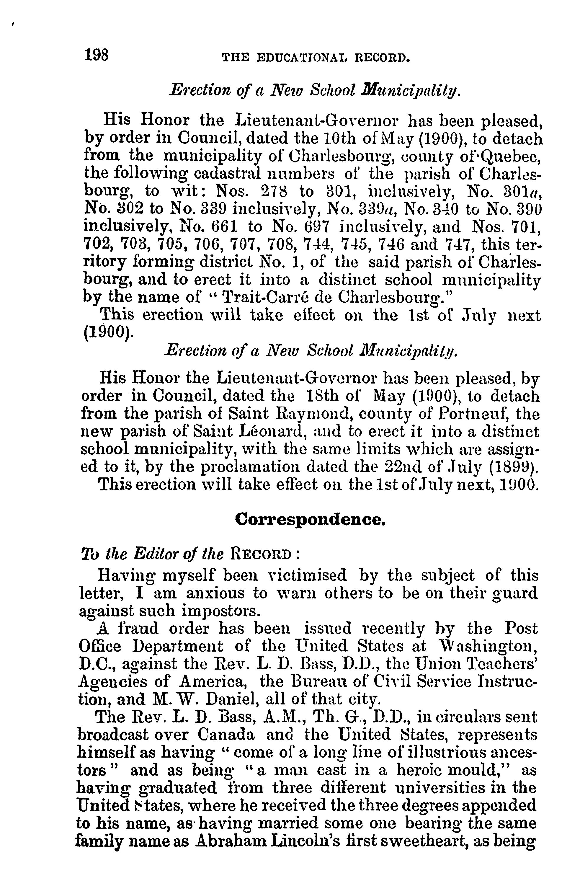 - The educational record of the province of Quebec [Vol. 20, no. 6 (June 1900)]