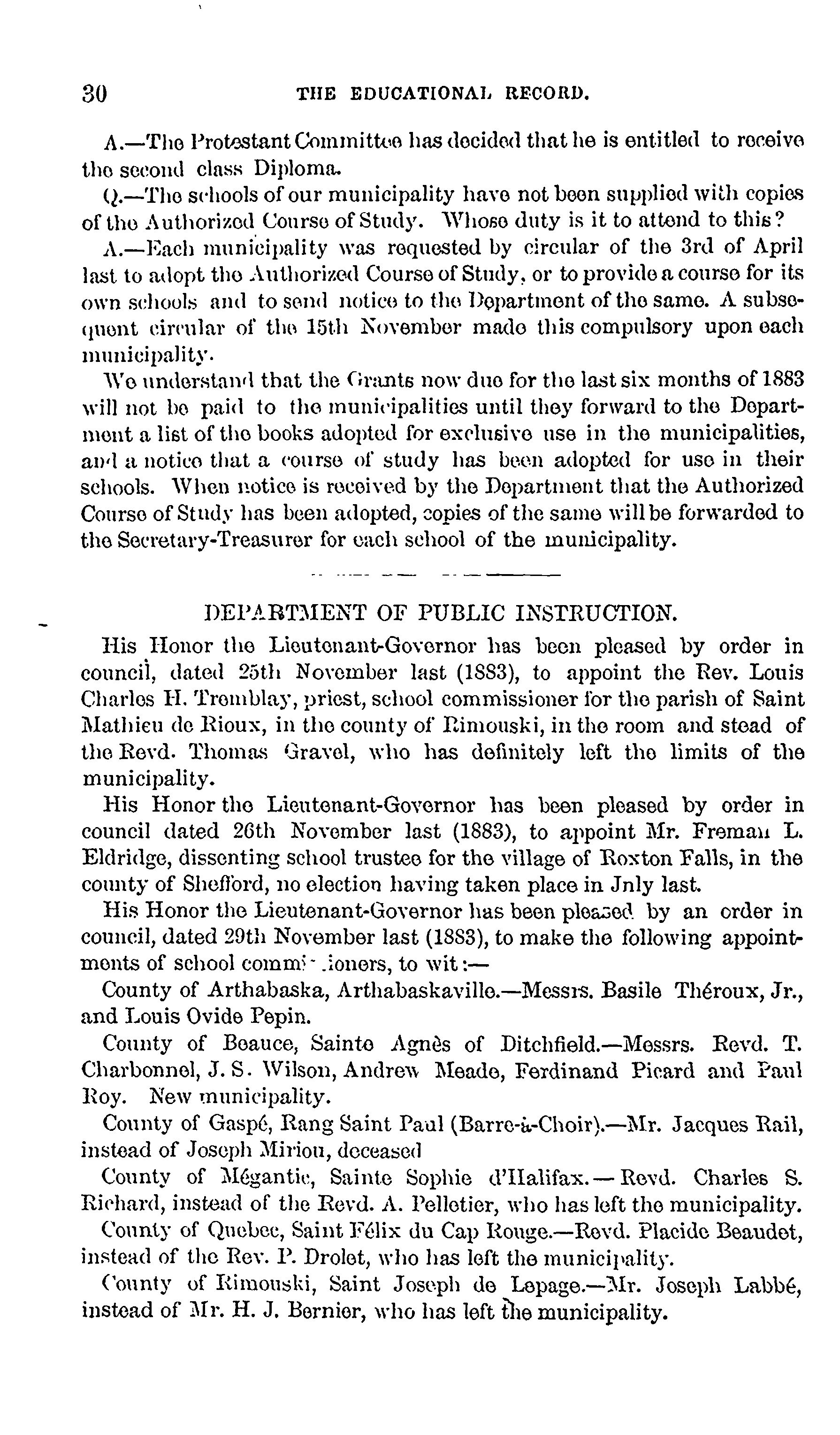 - The educational record of the province of Quebec [Vol. 4, no. 1 (Jan. 1884)]