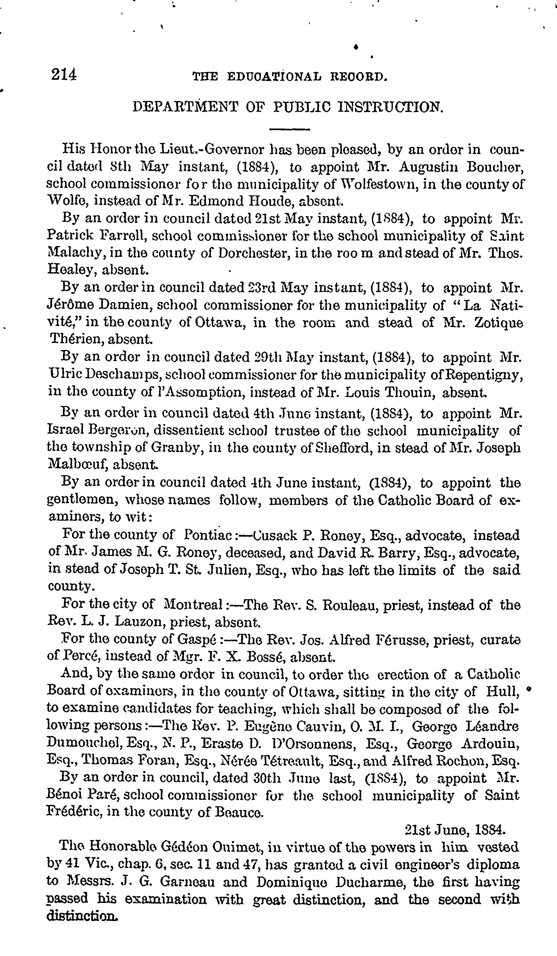 The educational record of the province of Quebec : [Vol. 4, no. 7 (July/Aug. 1884)]