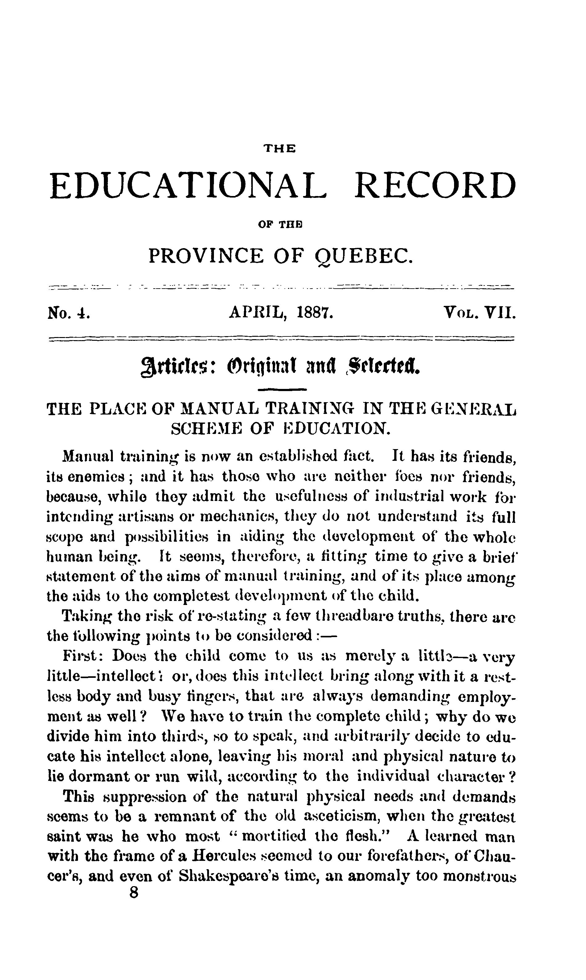 The educational record of the province of Quebec : [Vol. 7, no. 4 (Apr. 1887)]