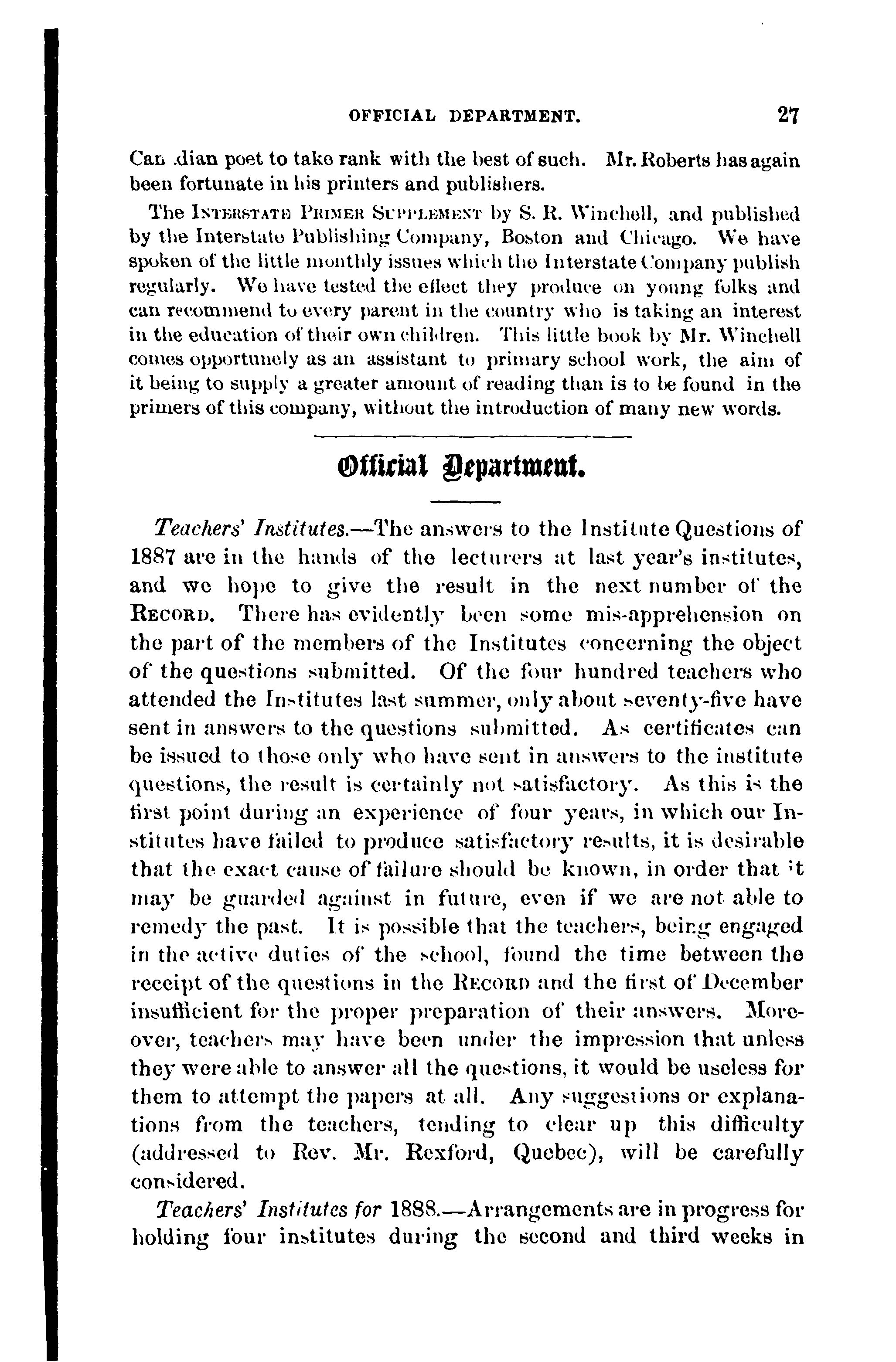 - The educational record of the province of Quebec [Vol. 8, no. 1 (Jan. 1888)]