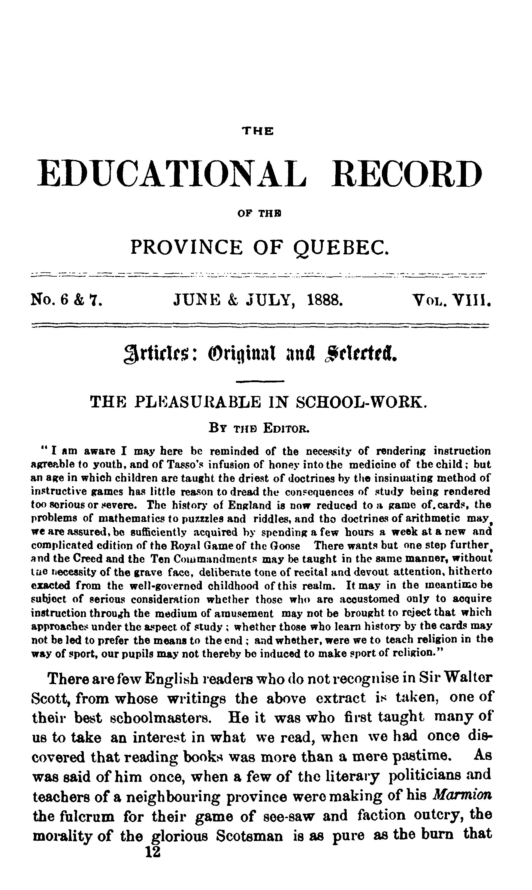 - The educational record of the province of Quebec [Vol. 8, no. 6/7 (June/July 1888)]