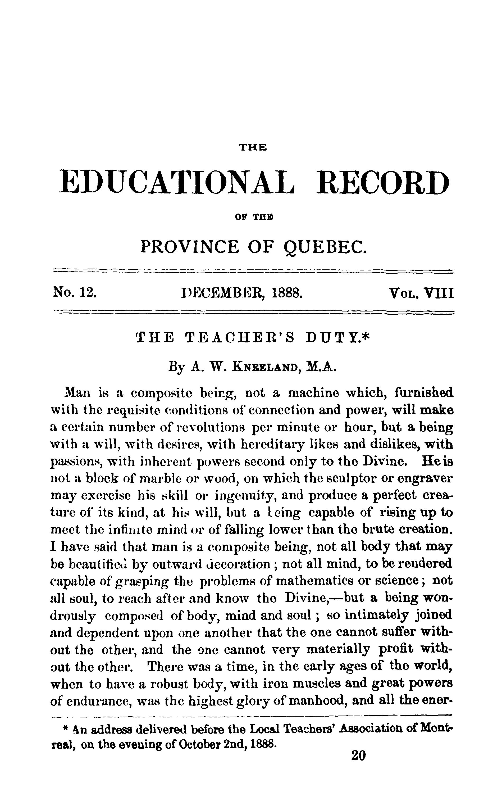 - The educational record of the province of Quebec [Vol. 8, no. 12 (Dec. 1888)]