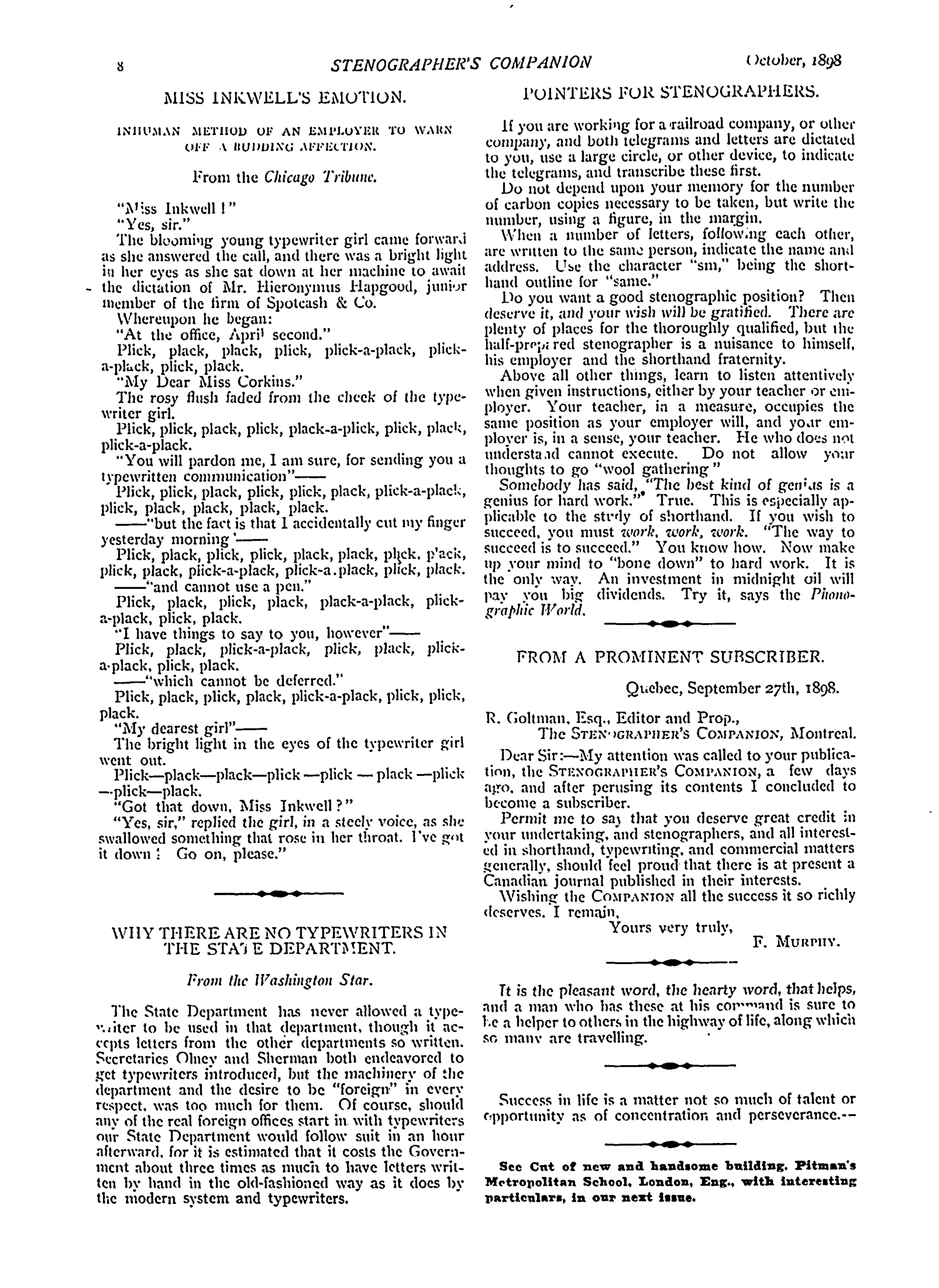 The stenographer's companion [Vol. 1, no. 7 (Oct. 1898)]