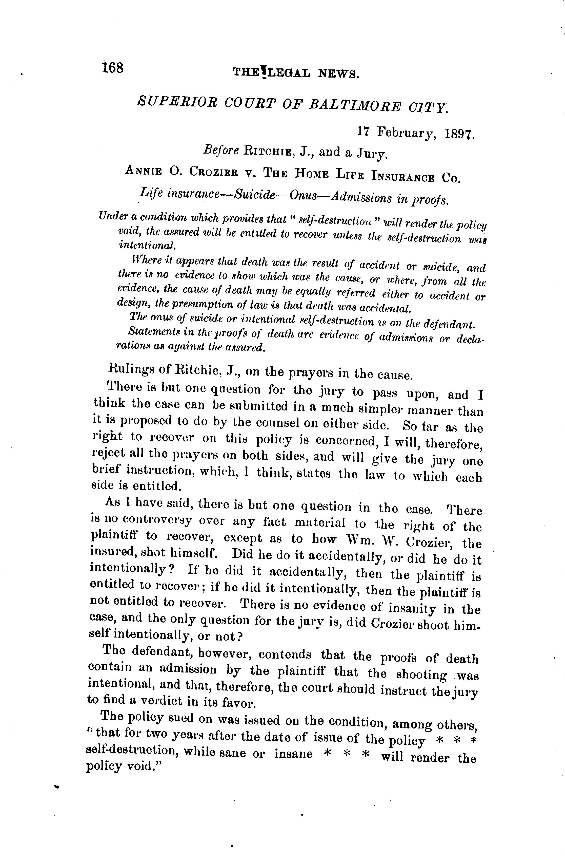 The legal news [Vol. 20, no. 11 (June 1, 1897)]