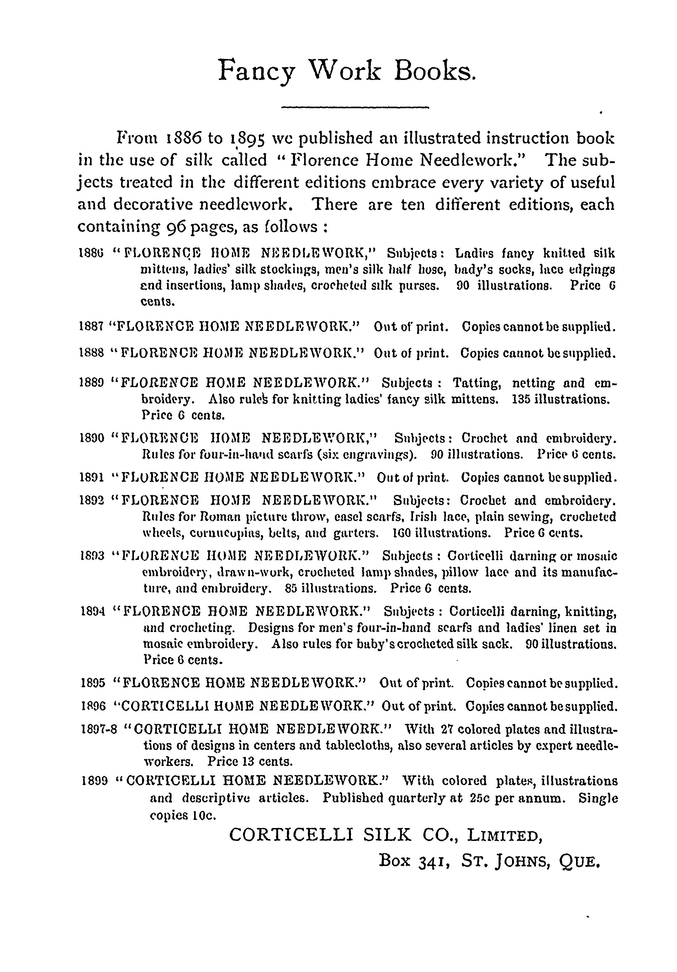Aide St. Johns, Quebec : Corticelli Silk Co., [1899]; 110 images avec recherche en texte intégral