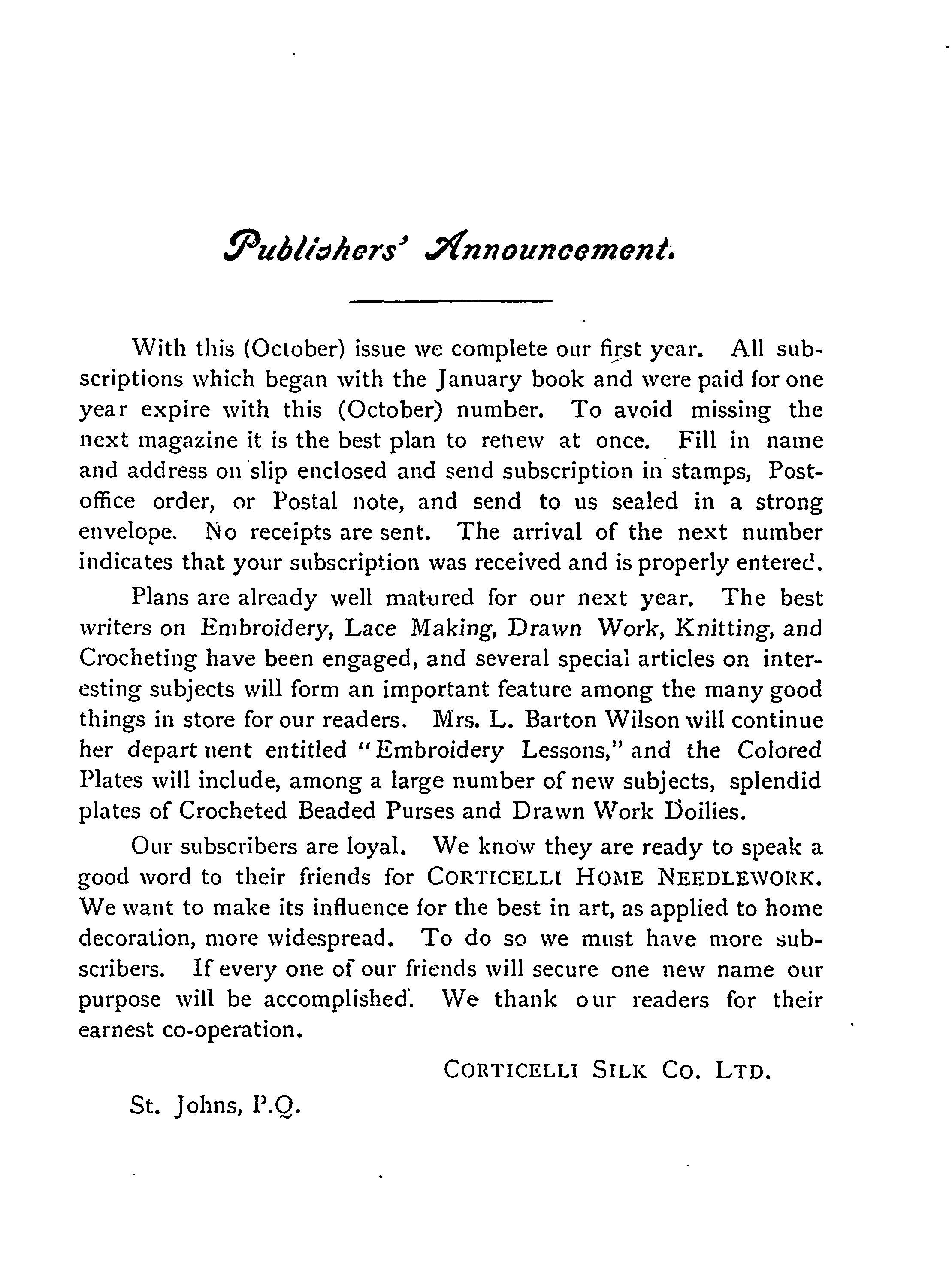 Corticelli home needlework : [Vol. 1, no. 4 (Oct. 1899)]