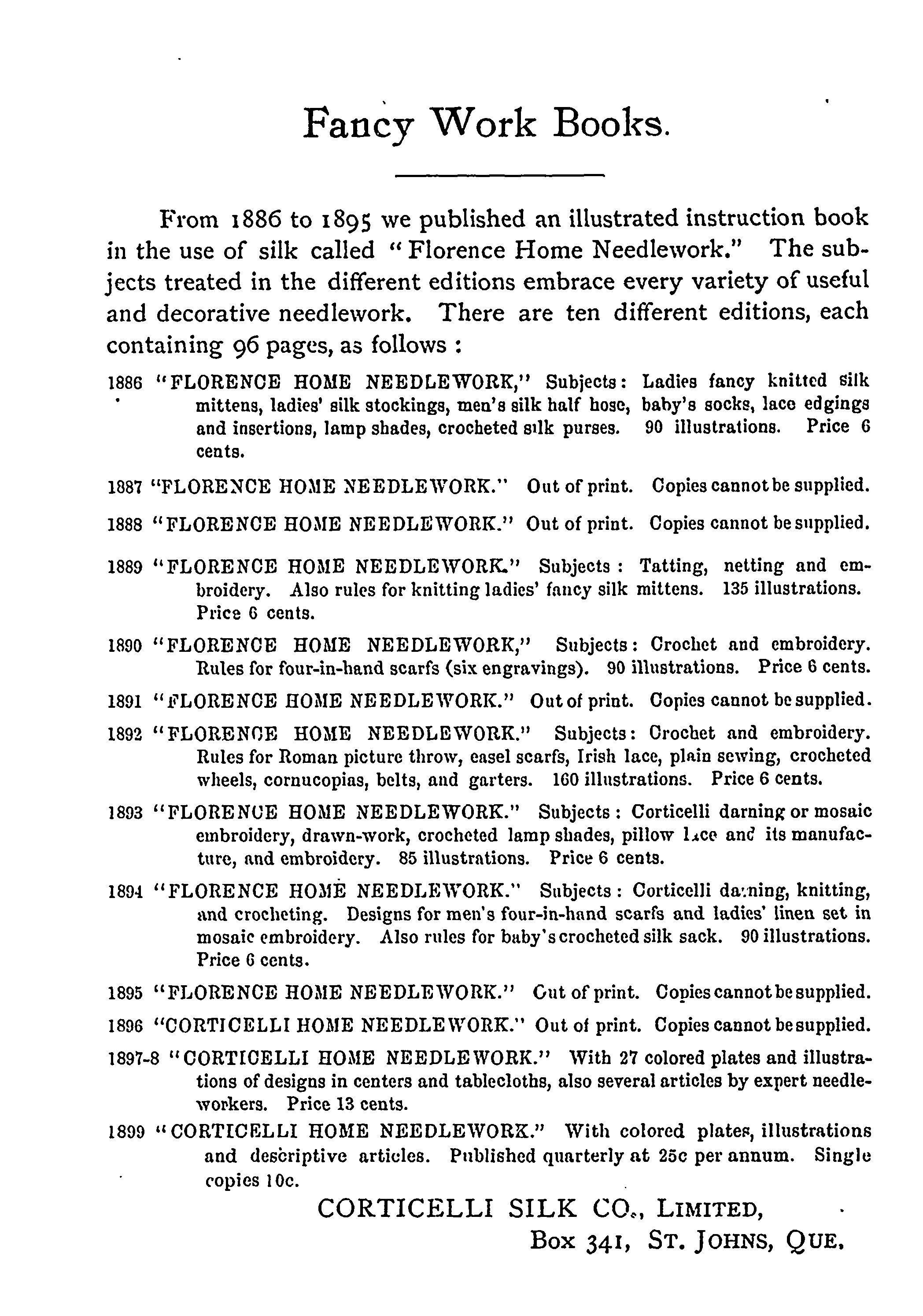 Aide St. Johns, Quebec : Corticelli Silk Co., [1899]; 124 images avec recherche en texte intégral
